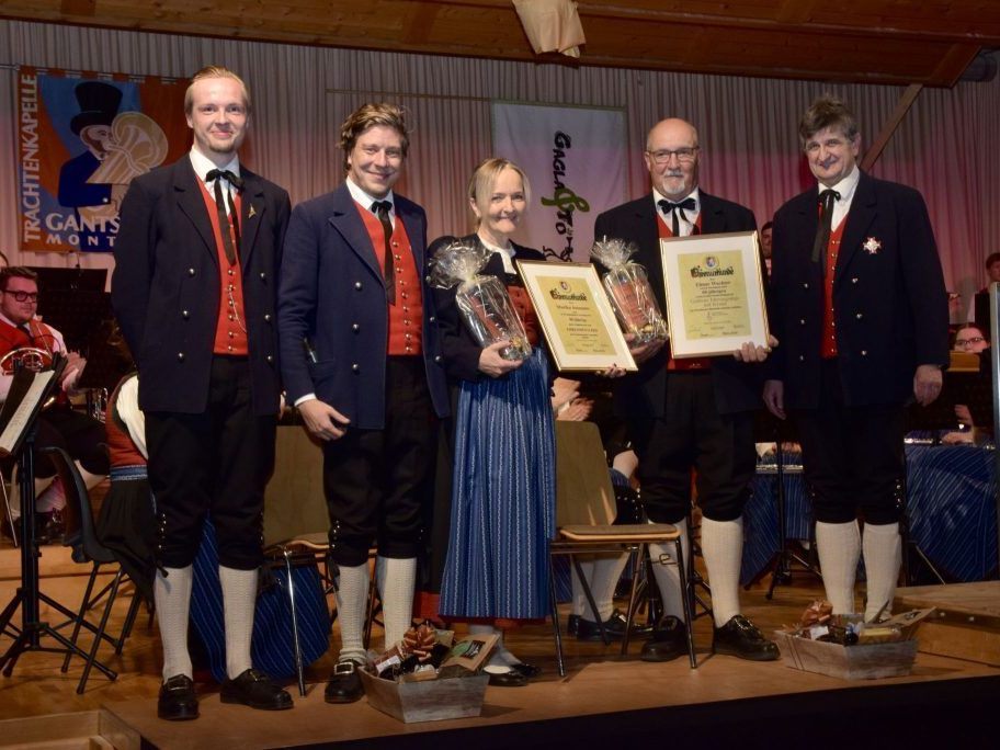 Vor 21 Stunden Trachtenkapelle Gantschier ehrte Marika Ammann und Elmar Wacher beim Cäciliakonzert.