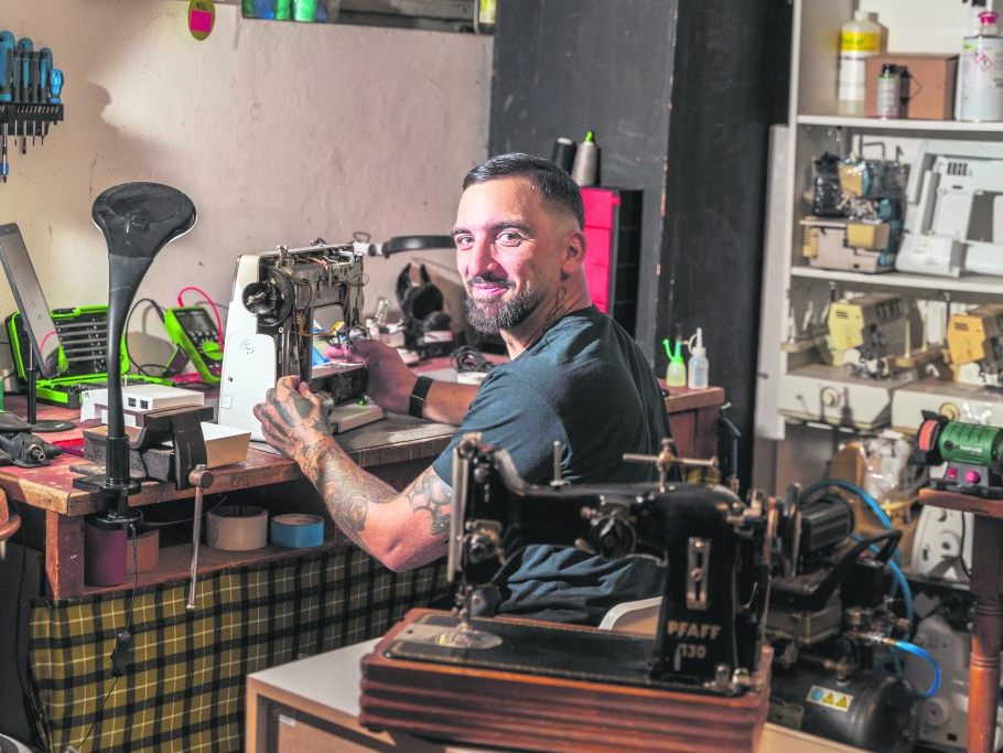 18.08.2023 Wenn die Nähmaschine nicht mehr funktioniert, muss sie nicht gleich im Müll landen. Patrick Konzett (31) ist seit einem Monat Nähmaschinenmechaniker in Bludesch.