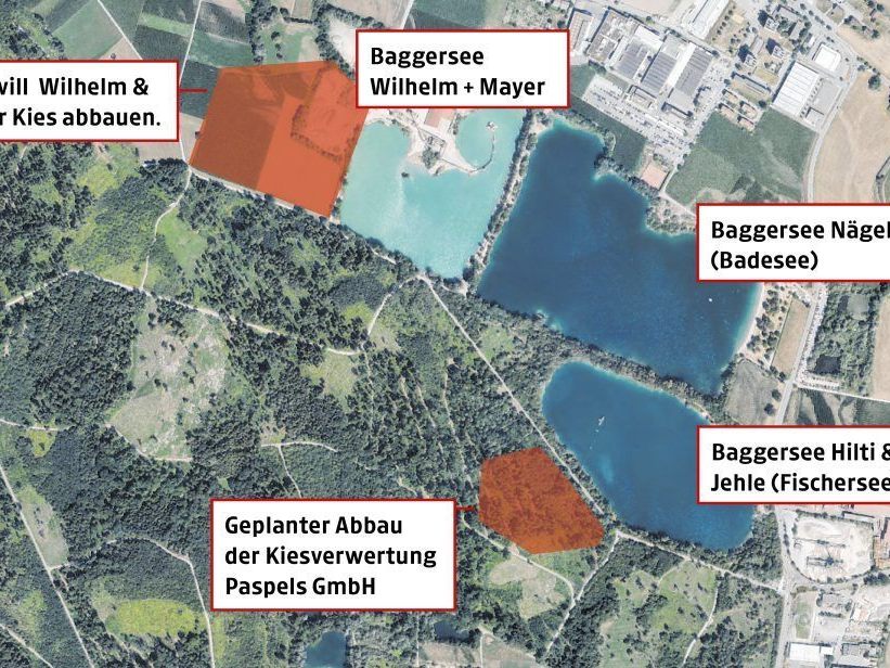 27.07.2023 Abbauprojekt bei Paspels-Seen in Feldkirch liegt unter Schwellenwert, Genehmigungsverfahren läuft noch. Weiterer Kiesabbau im Gebiet ebenfalls noch nicht bewilligt.