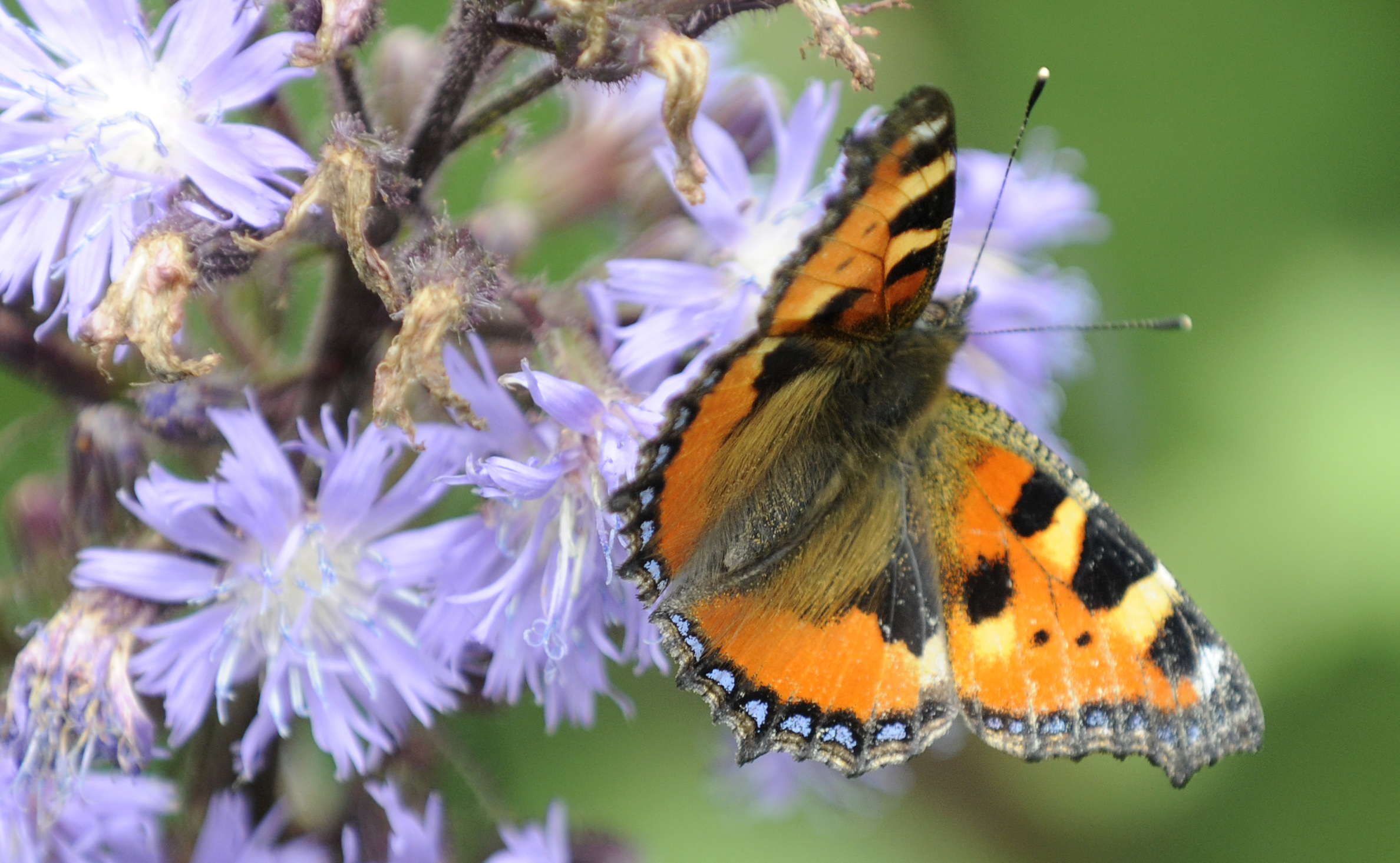 Diese Lücke schließen soll das Tagfaltermonitoring, das 2023 auf ganz Österreich ausgeweitet wurde und seit 2018 in Tirol läuft. Die Sympathien genießenden Tagfalter, von der Bevölkerung relativ leicht zu sichten und zu bestimmen, lassen als Bio-Indikatoren Rückschlüsse auf den generellen ökologischen Zustand zu. In Vorarlberg zählten Experten in den vier Jahren 8.000 Falter aus 108 Arten an hundert zufällig ausgewählten Wiesenstandorten, rund 3.400 Beobachtungen steuerten Freiwillige bei. 68 Prozent der in Vorarlberg vorkommenden Arten wurden dabei dokumentiert. Am häufigsten gezählt wurde der Kleine Fuchs, gefolgt vom Kleinen Kohlweißling und dem Großen Ochsenauge.