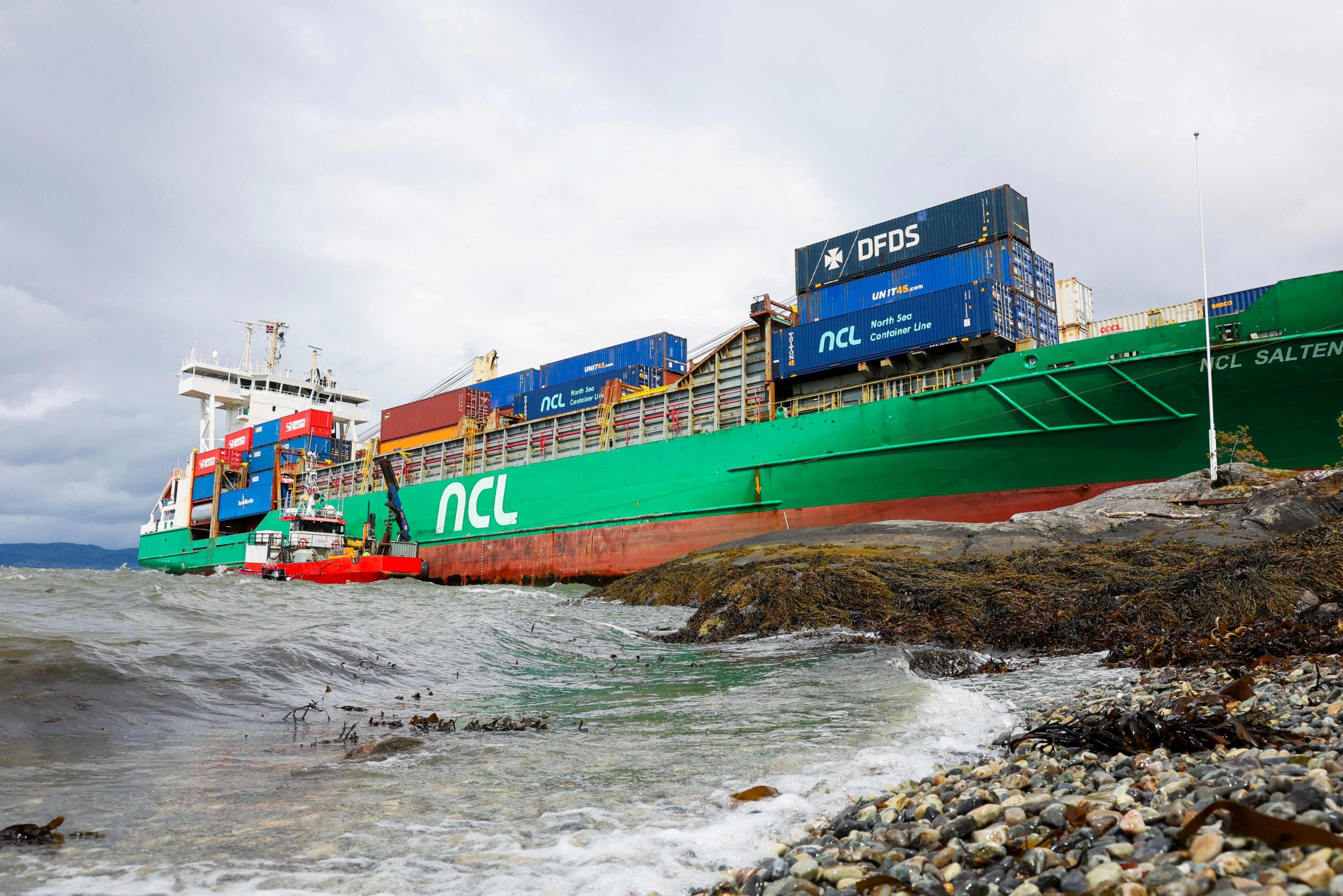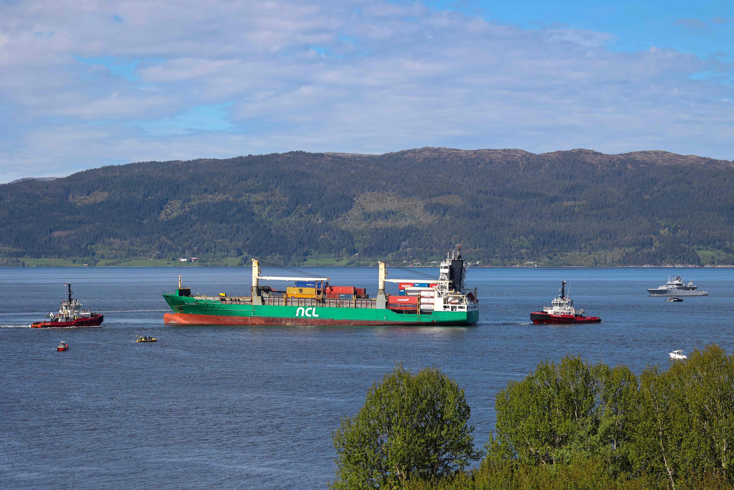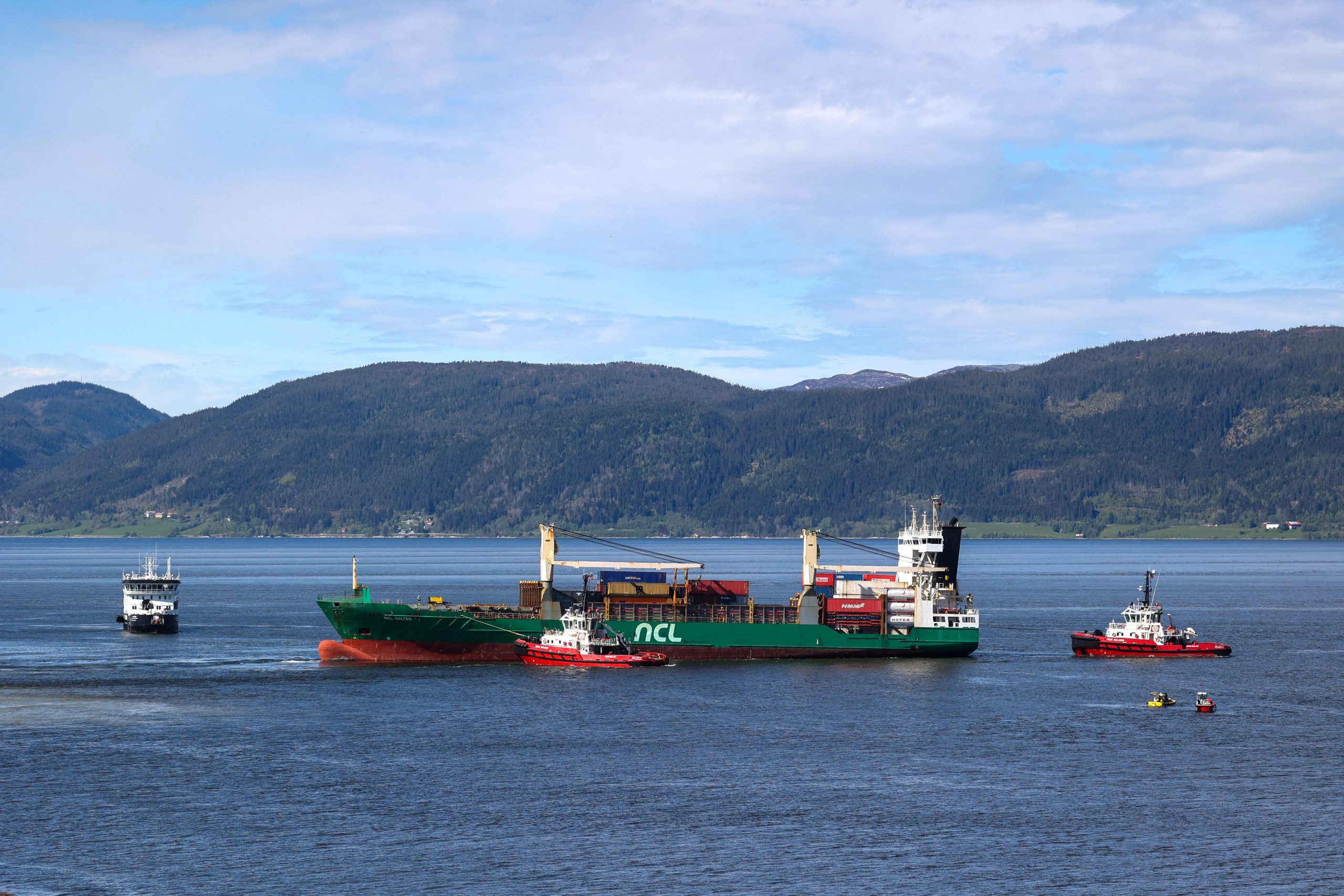 Das auf Grund gelaufene Containerschiff ist mittlerweile geborgen worden. Der Rundfunksender NRK übertrug die Bergung der 135 Meter langen "NCL Salten" aus dem Trondheimfjord live.