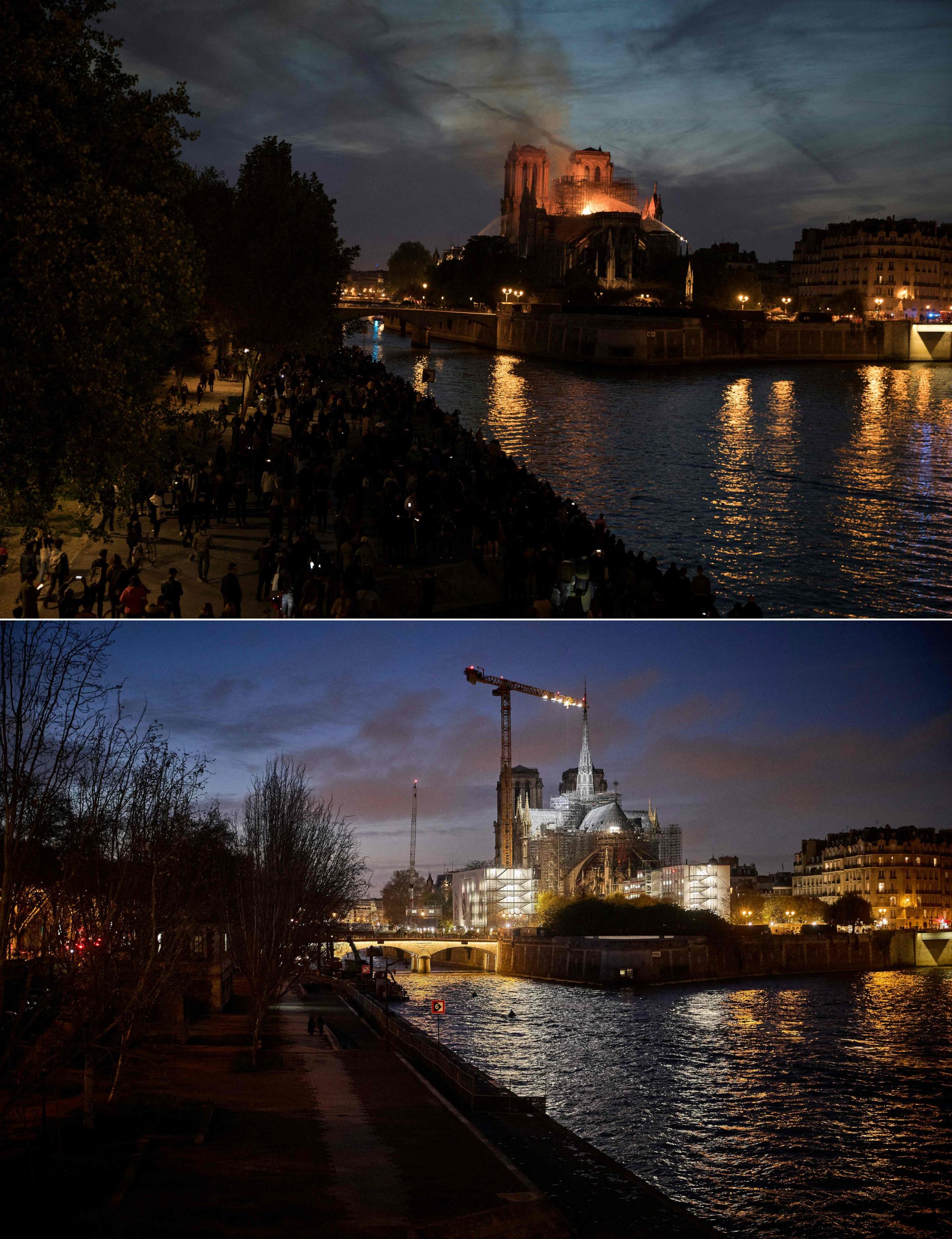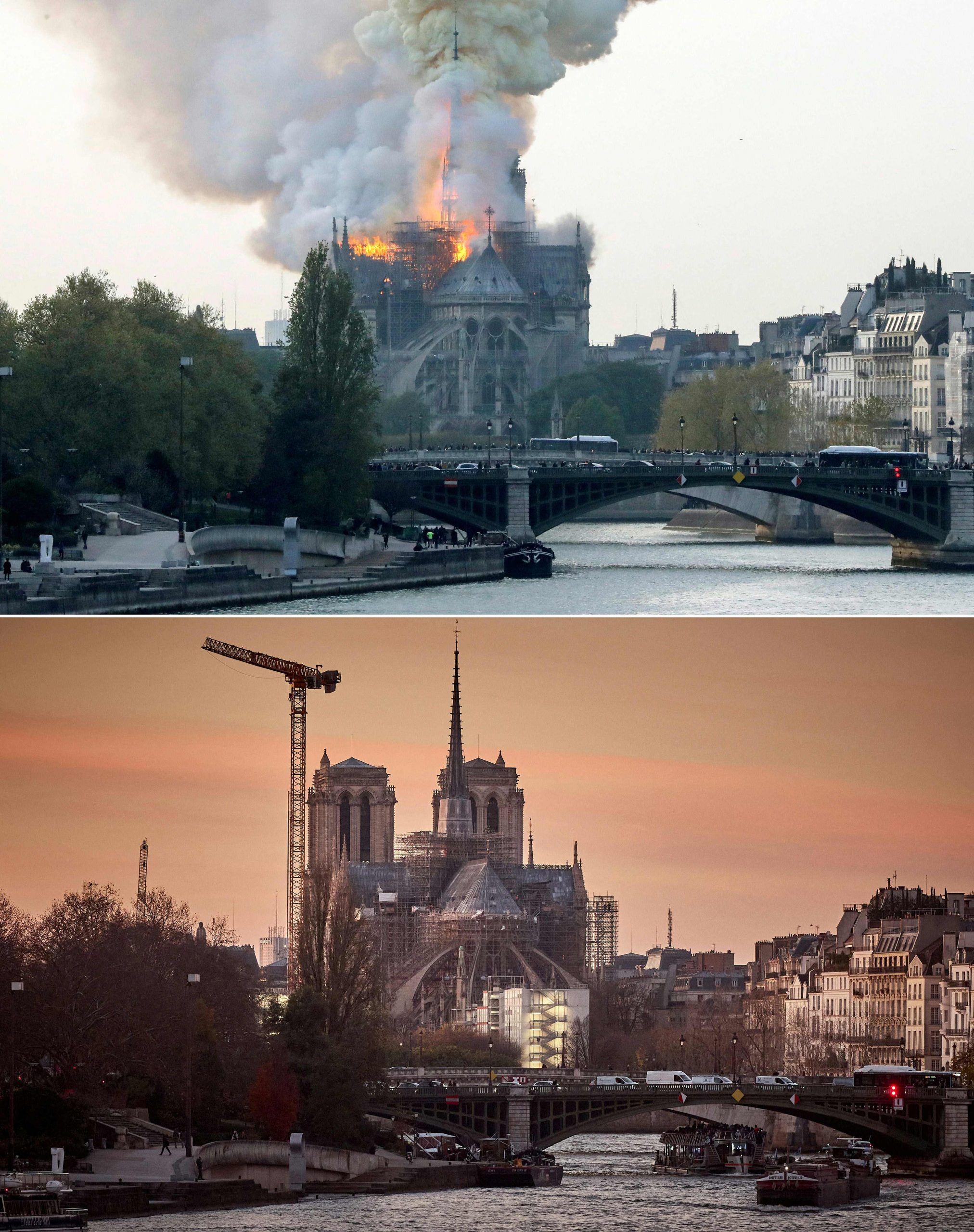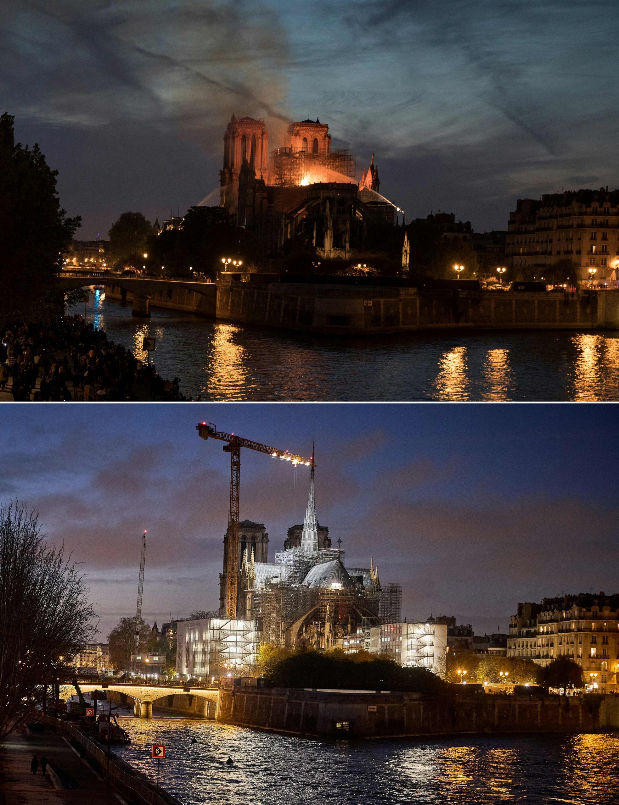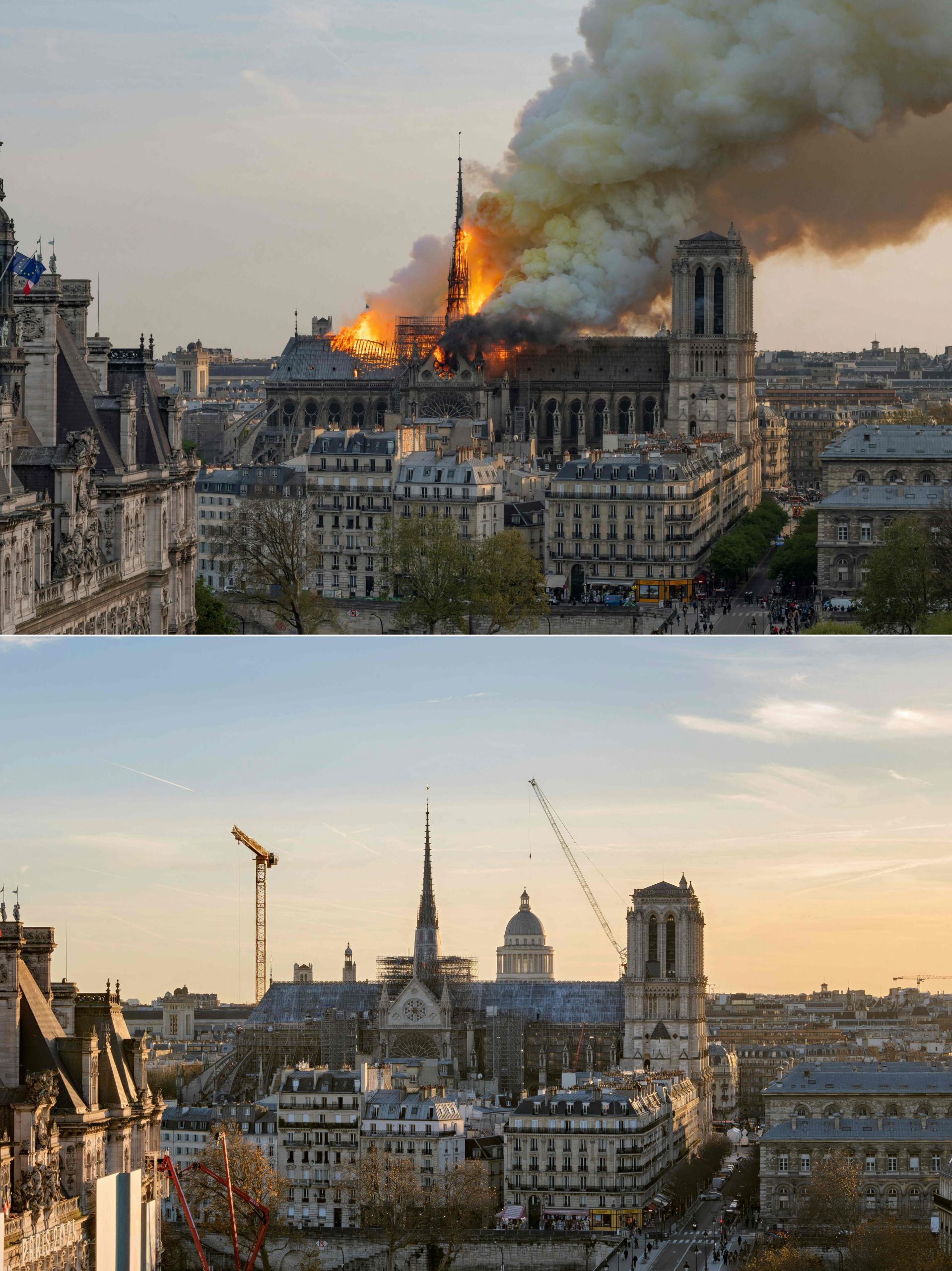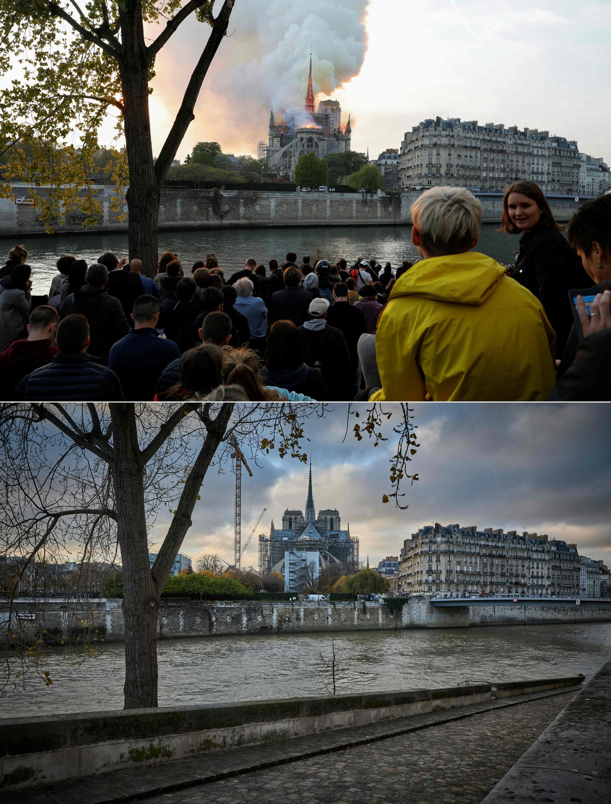 Der Brand löste weltweit Bestürzung aus. Papst Franziskus, der frühere US-Präsident Barack Obama, die damalige Bundeskanzlerin Angela Merkel - viele äußerten sich. US-Präsident Donald Trump schlug damals den Einsatz fliegender Wassertanks vor, um das Feuer zu löschen. Russlands Präsident Wladimir Putin bot an, Restaurierungsexperten zu schicken.