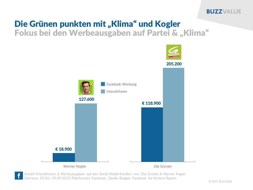 Das spiegelt sich auch in den erhöhten Ausgaben und der Interaktion auf den Social Media-Seiten der Bundespartei im Vergleich zu jener von Werner Kogler wider. "Darüber hinaus profitierten die Grünen fast während des gesamten Wahlkampfs auch ganz massiv von Greta Thunberg & Co. So waren die #FridayforFuture-Demonstrationen am Freitag vor der Wahl gerade auch in den sozialen Medien omnipräsent und mobilisierten äußerst umfangreich auch nochmal junge Wählergruppen."
