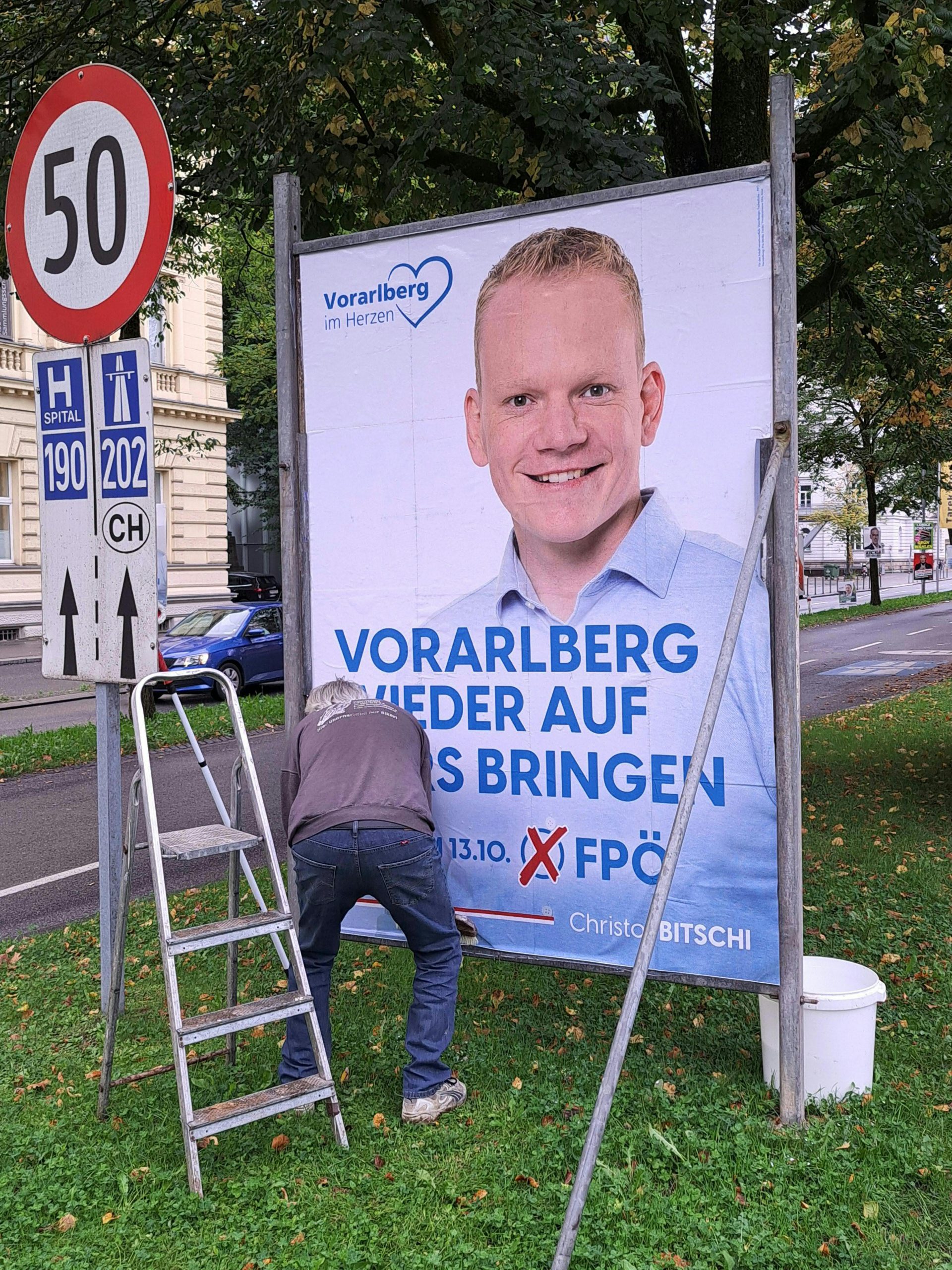 Im Laufe des Montags tauchten in Vorarlberg auch Wahlplakate von FPÖ-Spitzenkandidat Christof Bitschi ("Vorarlberg wieder auf Kurs bringen") auf. Bitschi hatte am Sonntag noch seinen Parteichef Herbert Kickl ("hat auf die richtigen Themen gesetzt") gelobt, und sah massiven Rückenwind für die Landtagswahl. Das Ziel sei, eine Stärke zu erreichen, die Schwarz-Grün auch auf Landesebene verhindere, sagte er. Man werde alles unternehmen, um die gute Ausgangsposition "ins Ziel zu bringen".