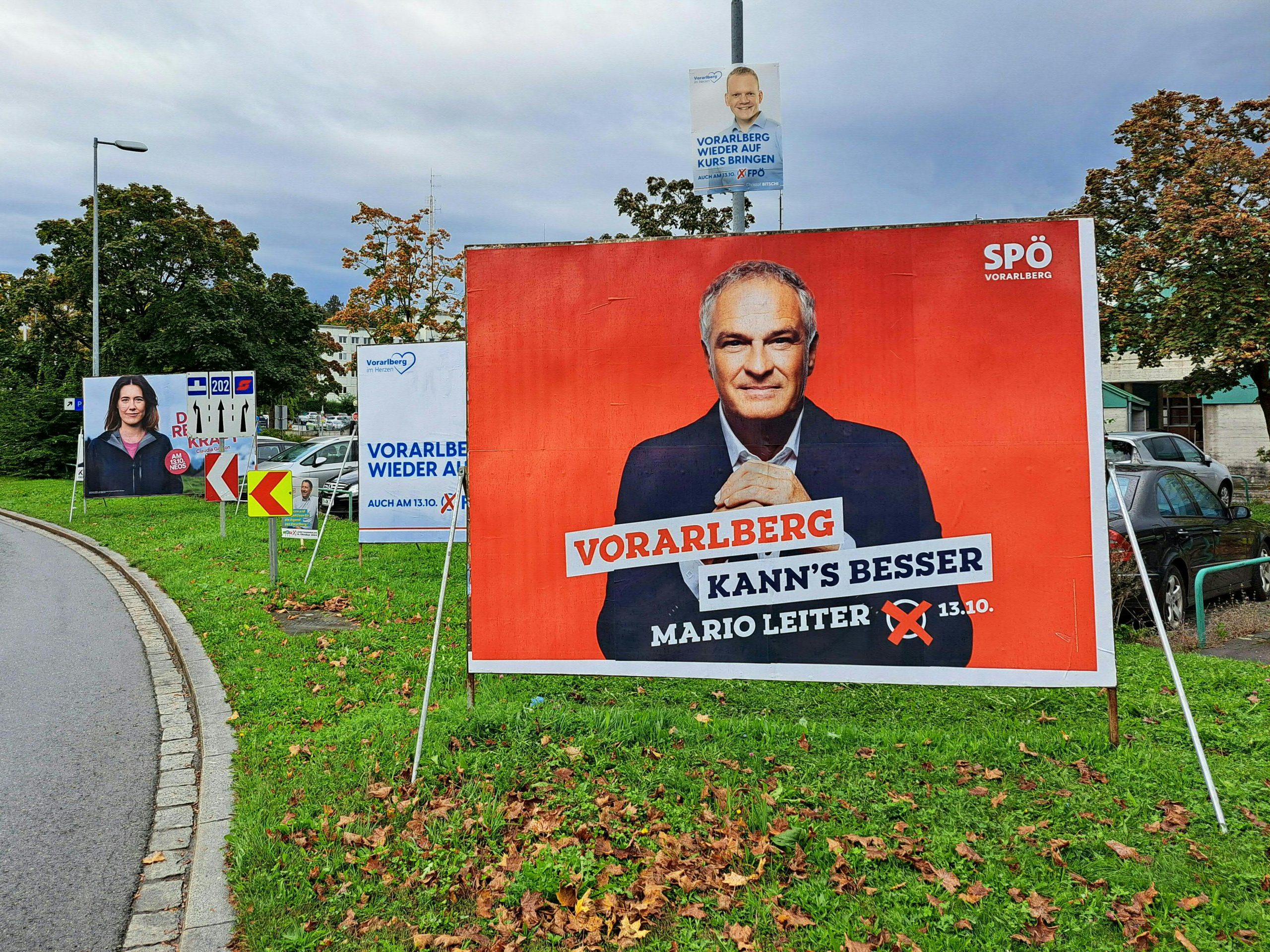 Im Mittelpunkt der Plakate für die Landtagswahl stehen naturgemäß die Spitzenkandidaten, weniger die Inhalte. Manche Botschaft wurde aber doch angebracht. In Vorarlberg dürfen der gesetzlichen Frist zufolge bereits seit Montag der Vorwoche Wahlplakate für die Landtagswahl aufgehängt werden. Bis auf die Sozialdemokraten um Mario Leiter ("Vorarlberg kann's besser") verzichteten die Parteien aber bis zur Nationalratswahl auf diese Form der Wahlwerbung. Man habe nicht "doppelt plakatieren" wollen, hieß es aus den Parteizentralen angesichts der nahen Nationalratswahl.
