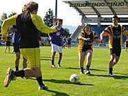 Bei dem Unified-Turnier spielten Menschen mit und ohne Behinderungen gemeinsam Fußball und setzten so ein Zeichen für die Inklusion, die selbstverständliche Teilhabe von Menschen mit Behinderungen in der Gesellschaft. Rund 30 TeilnehmerInnen aus den Lebenshilfe-Werkstätten in Batschuns, Dornbirn, Götzis, Hohenems, Lustenau und Rankweil bewiesen dabei ihr sportliches Talent und schossen unter tatkräftiger Unterstützung von Guem, Scherrer, Tomi & Co. Tore am laufenden Band. Auch Lustenaus Bürgermeister Dr. Kurt Fischer ließ es sich nicht nehmen, auf dem grünen Platz Solidarität und Fußballtalent zu beweisen. Seine Amtskollegen aus Altach (Gottfried Brändle), Hohenems (Richard Amann) und Koblach (Fritz Maierhofer) jubelten zusammen mit den anderen ZuschauerInnen den Mannschaften von der Tribüne aus zu. Damit auf dem Platz alles seine Ordnung hatte, fungierte Ex-Fifa-Schiedsrichter Gerd Grabher als souveräner Unparteiischer.