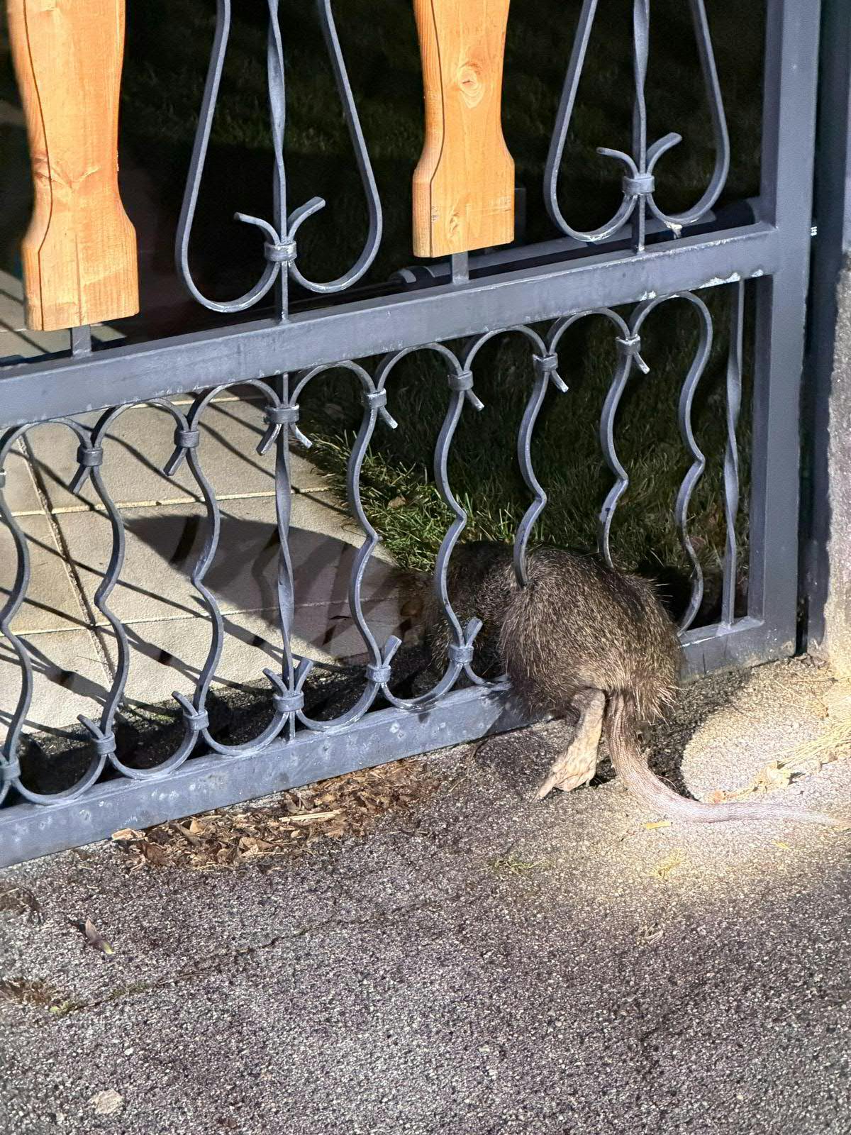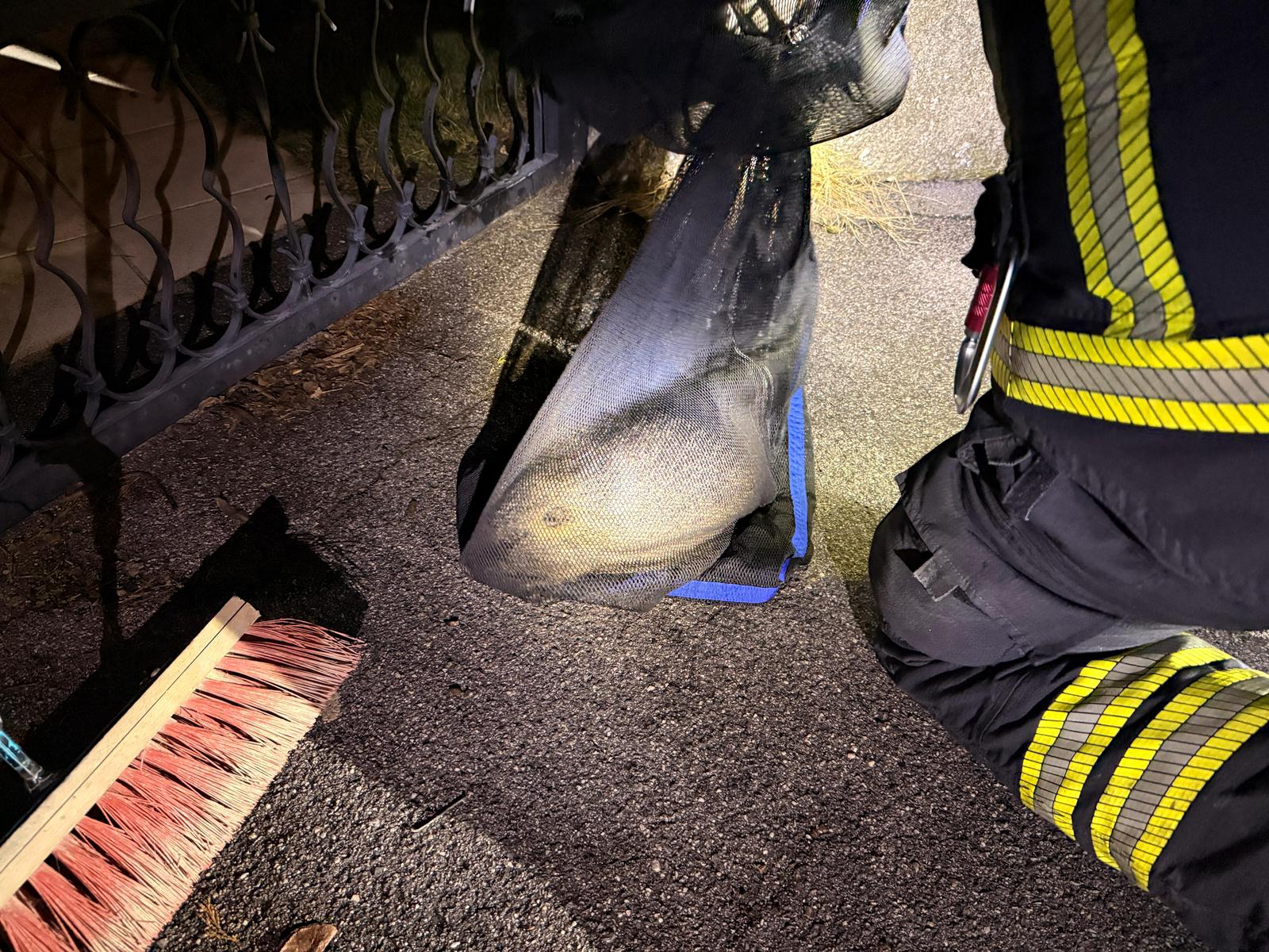 According to a press release, the nutria wanted to slip through the bars at the garage entrance of a single-family house. Because the animal could no longer free itself, the FF Schwechat was called.