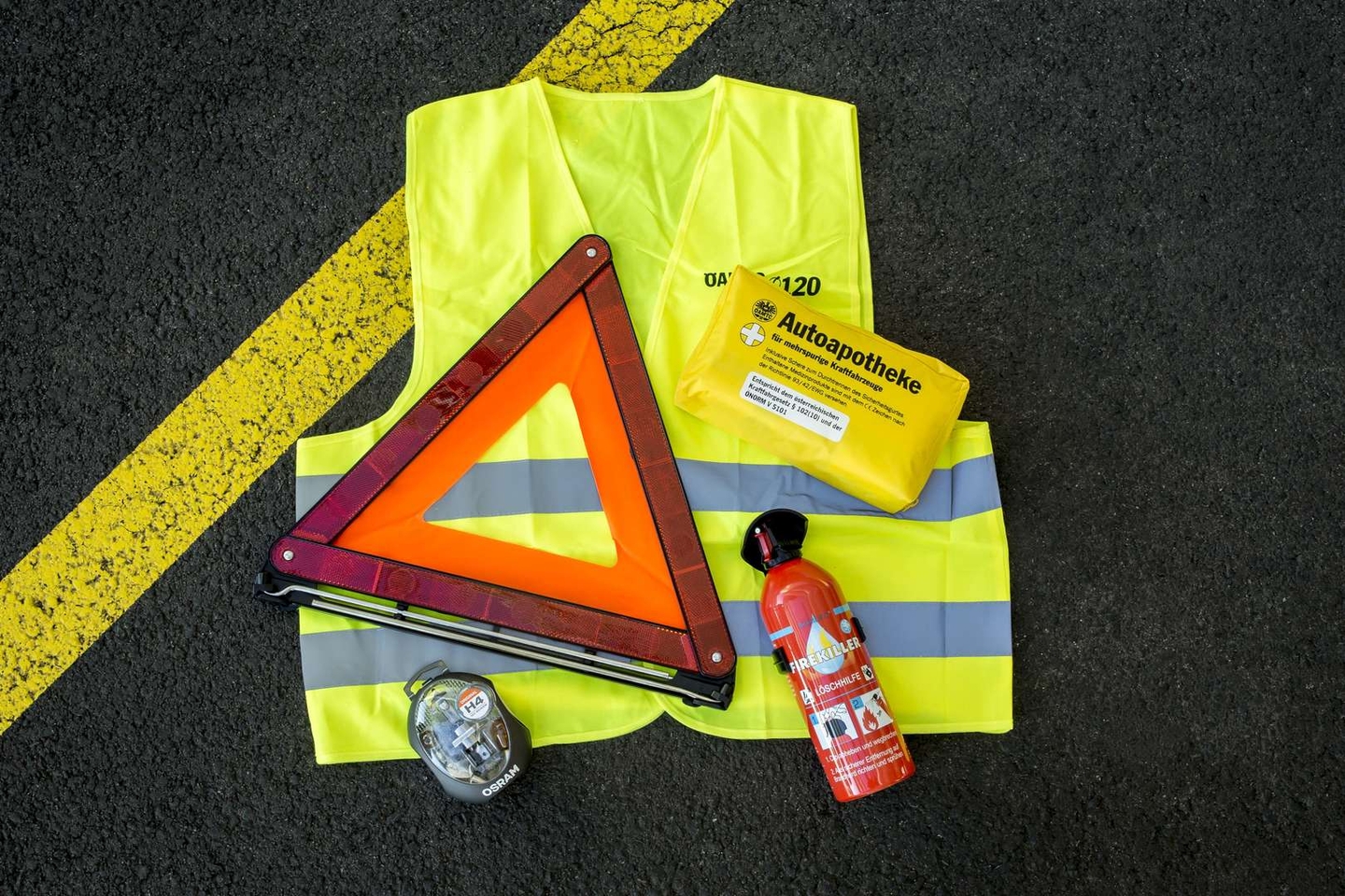 Die Klassiker unter den Mitführpflichten – also die Dinge, die im Auto unbedingt mitgenommen werden müssen – sind Warndreieck oder auch die Autoapotheke. In Österreich zählt zur Pflichtausstattung im Auto zusätzlich noch eine Warnweste.