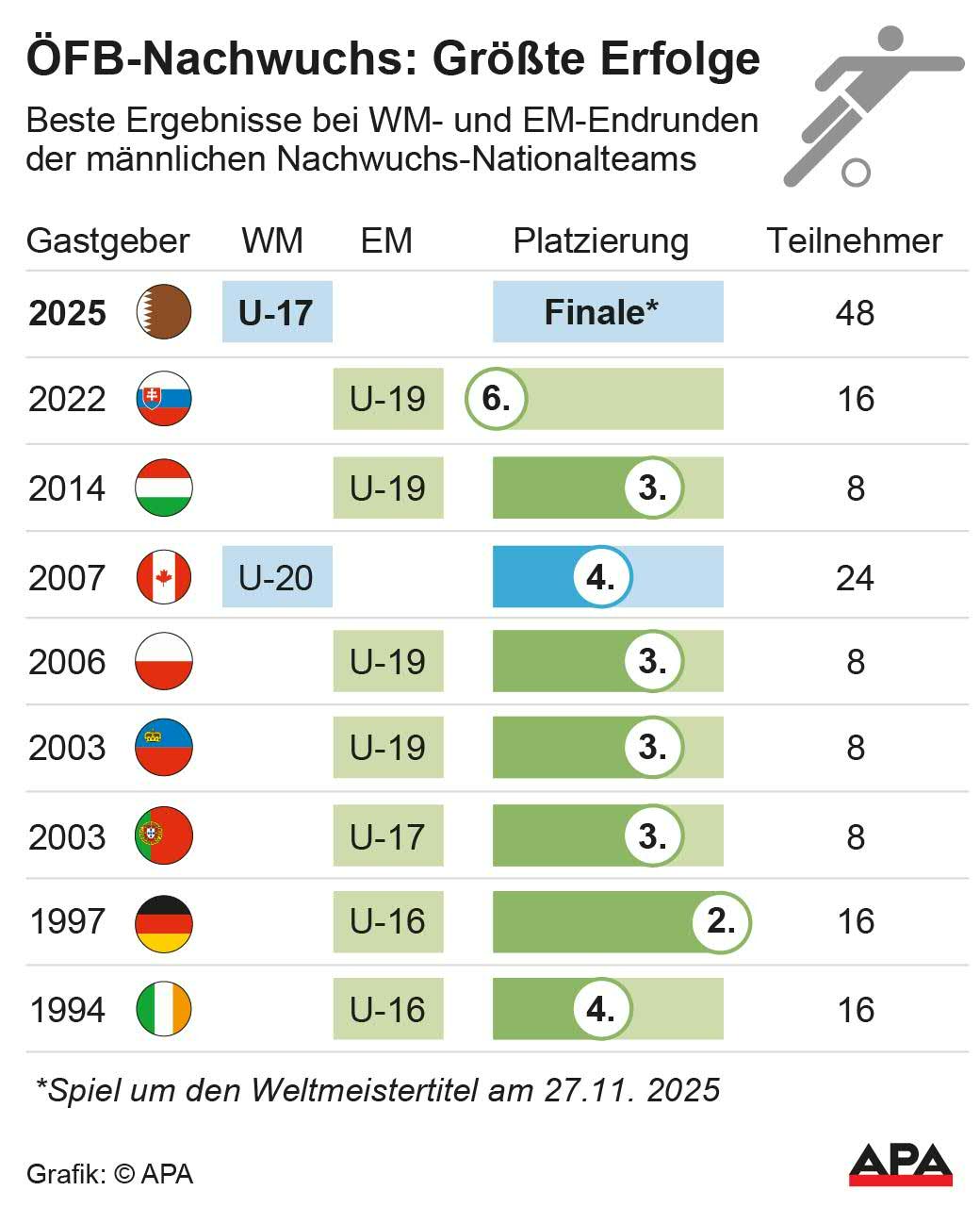 Der Traum vom erstmaligen WM-Titel lebt für Österreichs U17-Fußball-Nationalteam weiter. Die Truppe von Teamchef Hermann Stadler bezwang am Montag in der Aspire Academy in Doha Italien im Halbfinale mit 2:0. Matchwinner war wieder der 17-jährige Kärntner Johannes Moser, der mit seinen Turniertoren sieben (57.) und acht (93.) die alleinige Führung in der WM-Schützenliste übernahm. Finalgegner ist am Donnerstag (17.00) im Khalifa International Stadium Portugal oder Brasilien.
