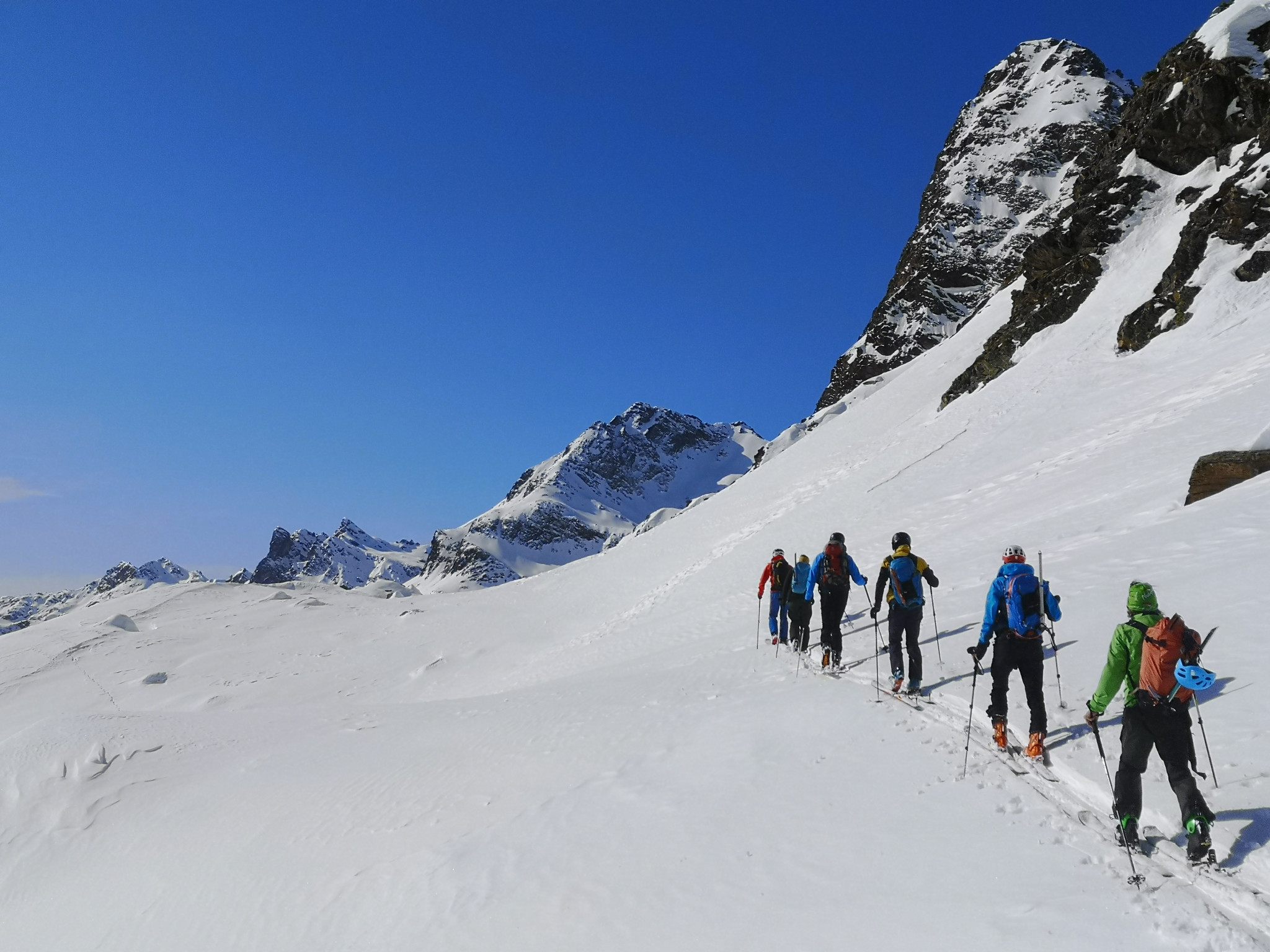 Anforderungen: 3-5 h Aufstiege in normalem Gehtempo, Skitourenkenntnisse, Pisten-Skifahrer mit Tiefschneeerfahrung