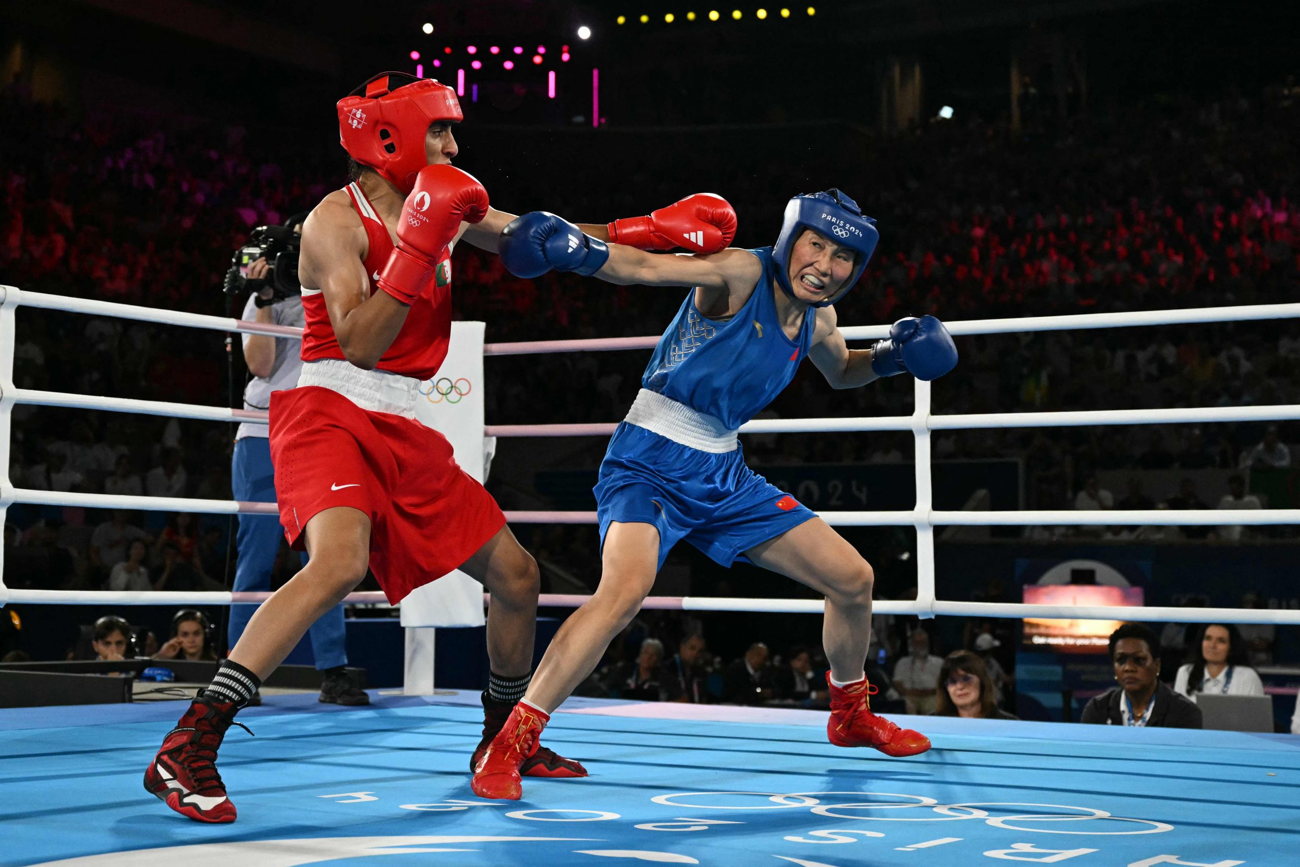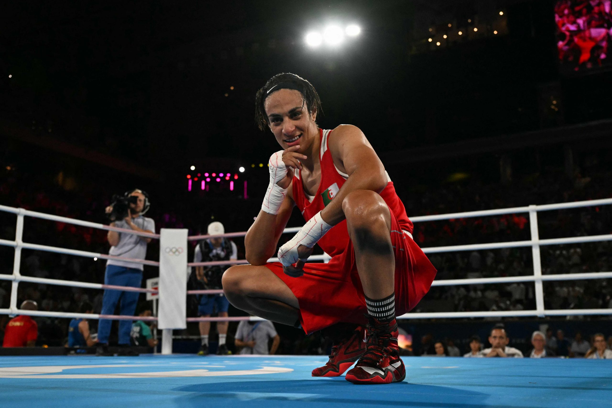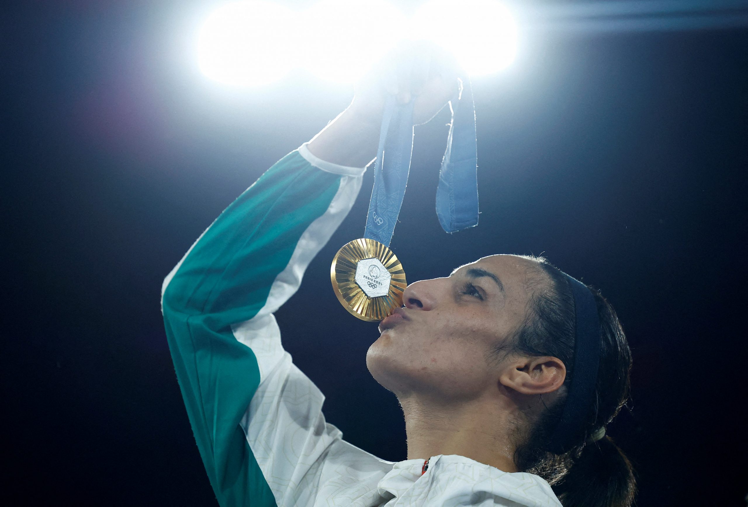 Wie groß ihre Freude und Erleichterung waren, hatte Khelif schon unmittelbar nach dem einstimmigen Punktsieg am Freitagabend auf dem Court Philippe Chatrier vor rund 15.000 Zuschauern gezeigt. In der Ringmitte führte sie wieder ihren Jubeltanz auf und wurde anschließend unter tosendem Jubel der zahlreichen algerischen Fans von einem Betreuer auf dessen Schultern getragen. Als sie kurz vor Mitternacht bei der Siegerehrung die Goldmedaille umgehängt bekam, rieb sie kurz daran und gab ihr dann einen Kuss.