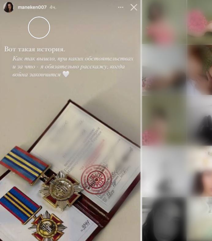 Model und Bloggerin Ksyusha Maneken wurde am Freitag in Kiew mit dem Orden „Für die Unterstützung des militärischen Geheimdienstes der Ukraine“ zweiten Grades ausgezeichnet.