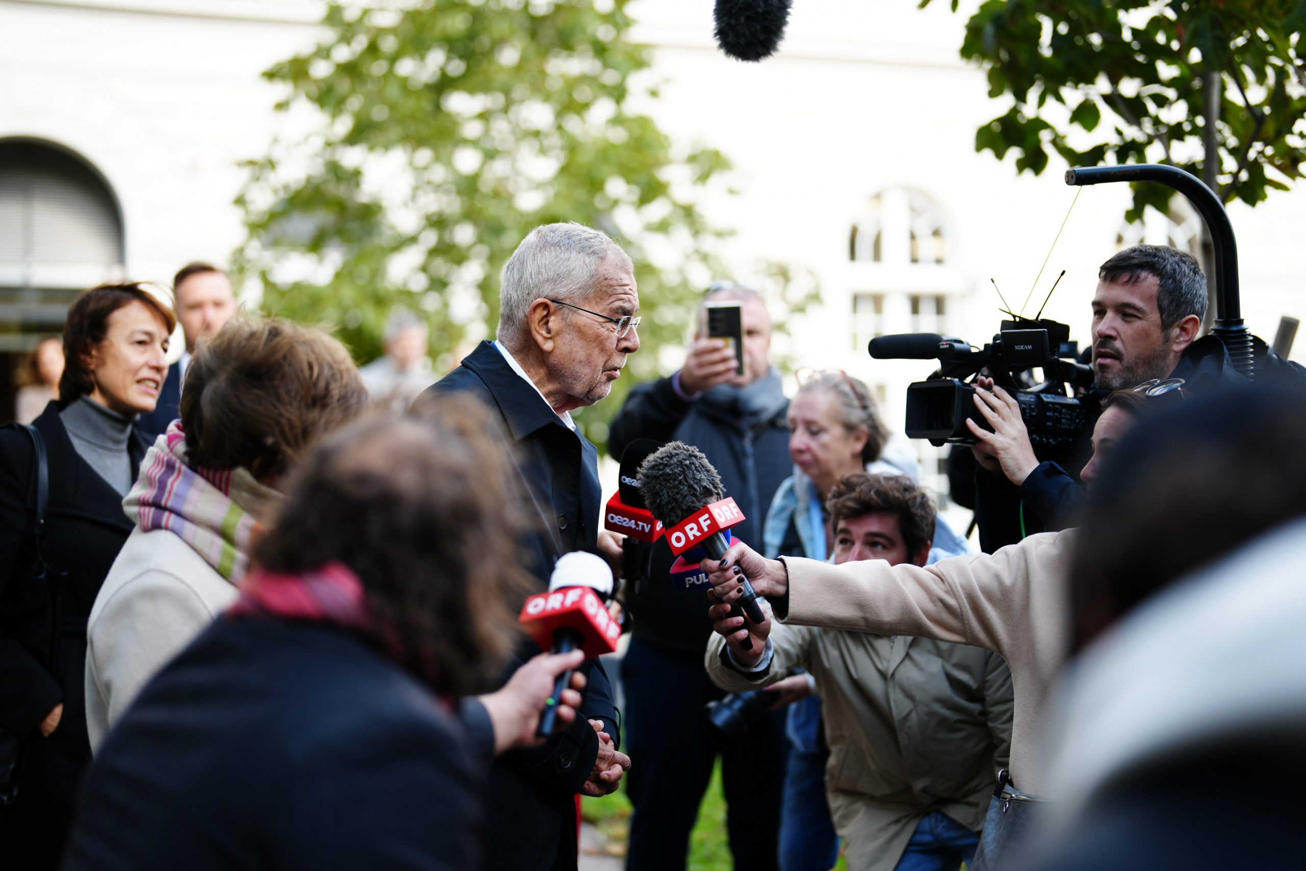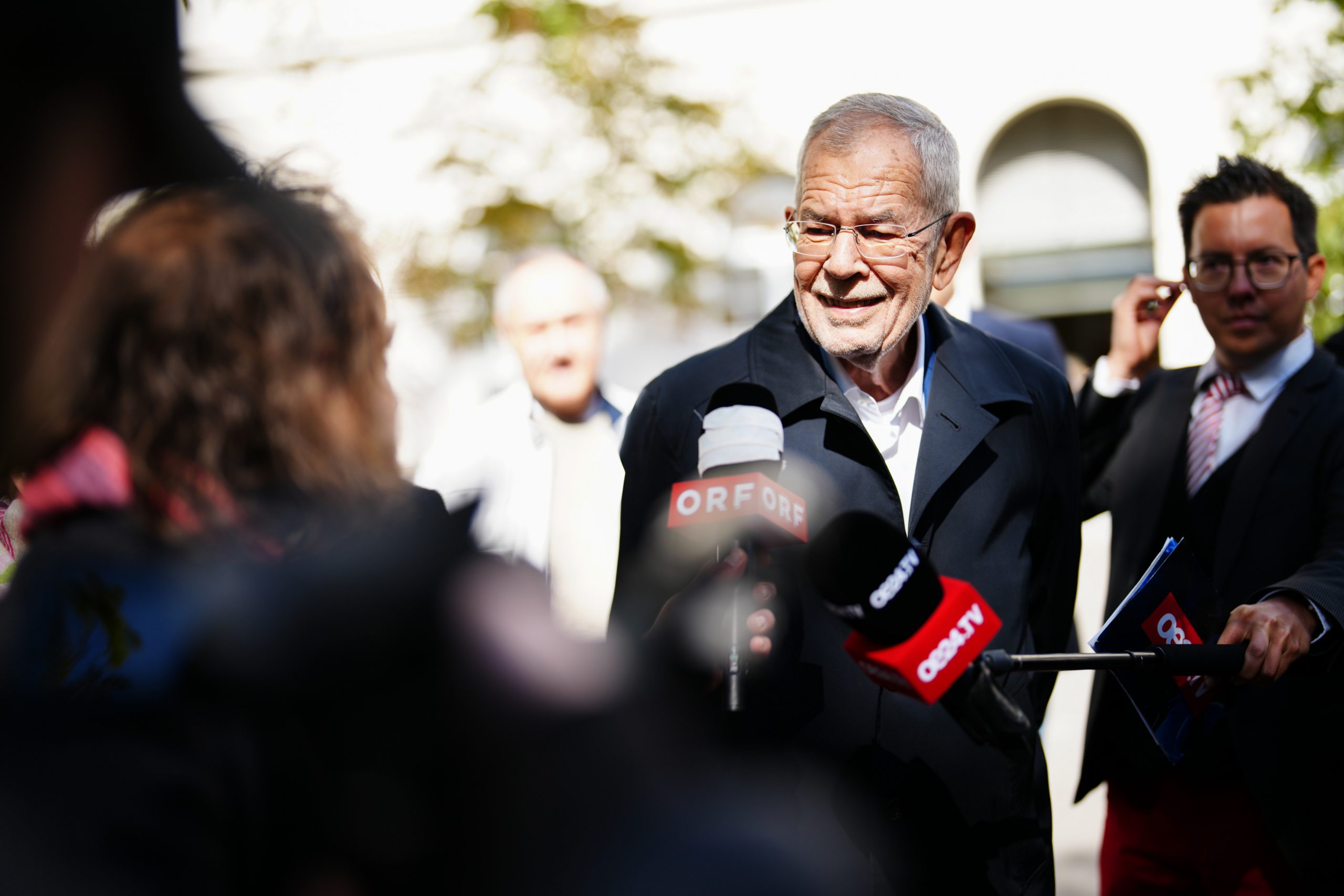 Auch Bundespräsident Alexander Van der Bellen ging kurz vor Mittag an der Musikuniversität Wien wählen, begleitet von Ehefrau Doris Schmidauer. In seinem Statement dankte er den zahlreichen Wahlhelferinnen und -helfern für ihren Einsatz und zeigte sich zuversichtlich für eine hohe Wahlbeteiligung.
