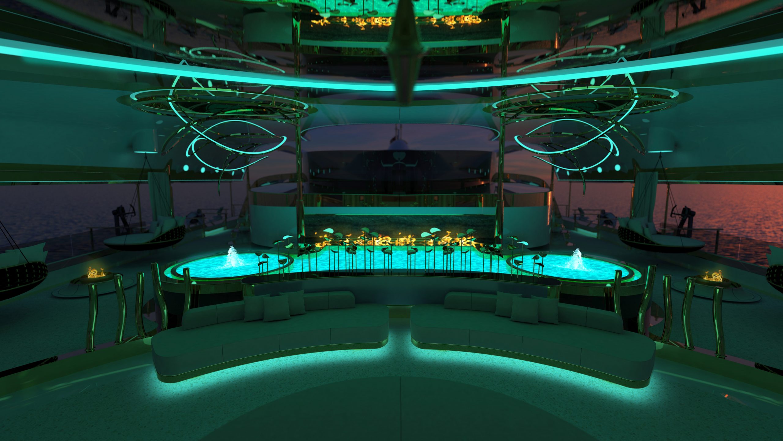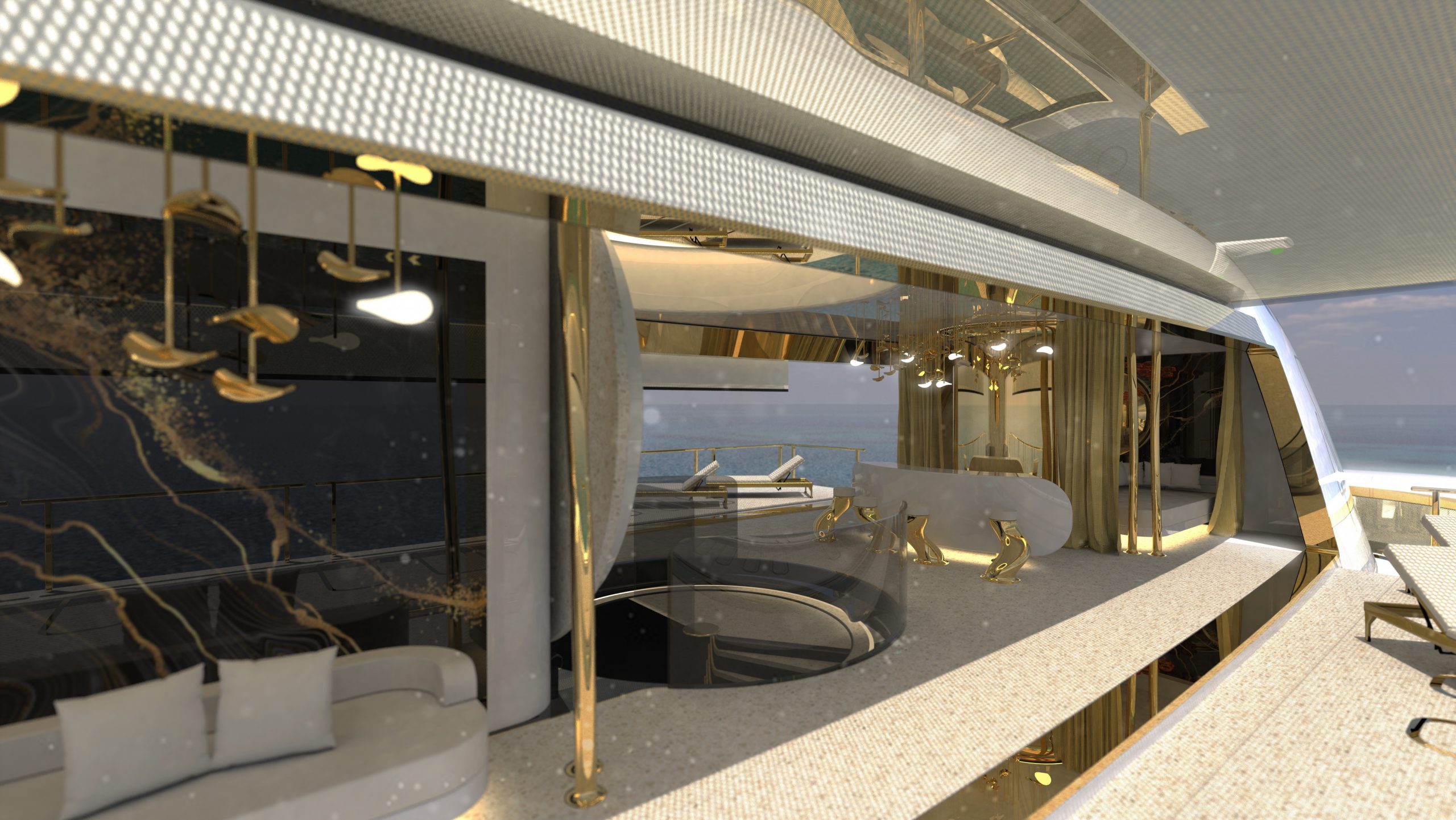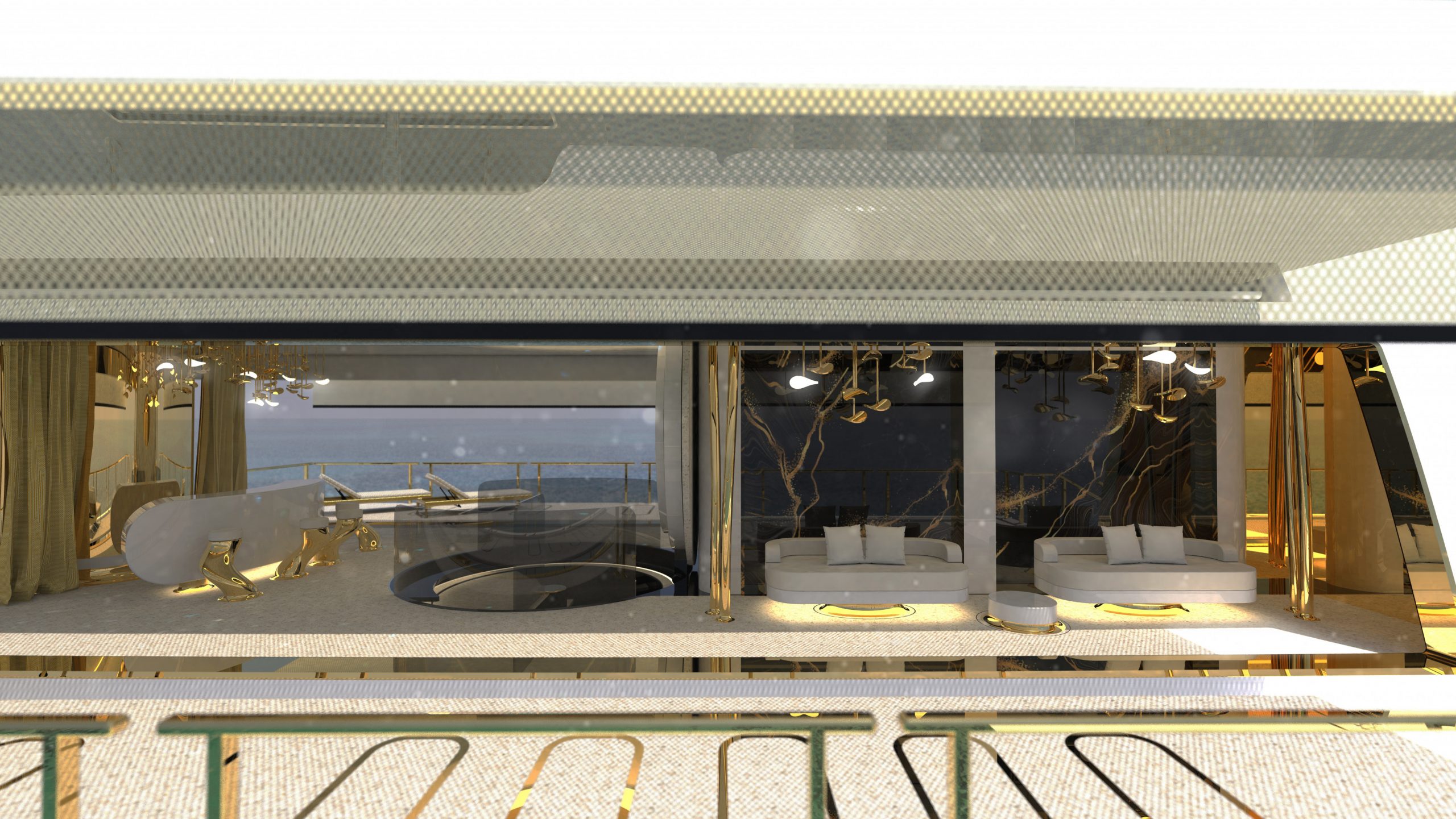 Mit einer Länge von 166 Metern und einer Breite von 23 Metern ist die M5 vergleichbar mit einer Superyacht. Zu den Annehmlichkeiten zählen ein Pool, ein Spa, ein Fitnessstudio, ein Kino und ein Helikopterlandeplatz. Optional sind extravagante Extras wie ein Heißluftballon und eine Unterwasser-Hai-Futterstation verfügbar.