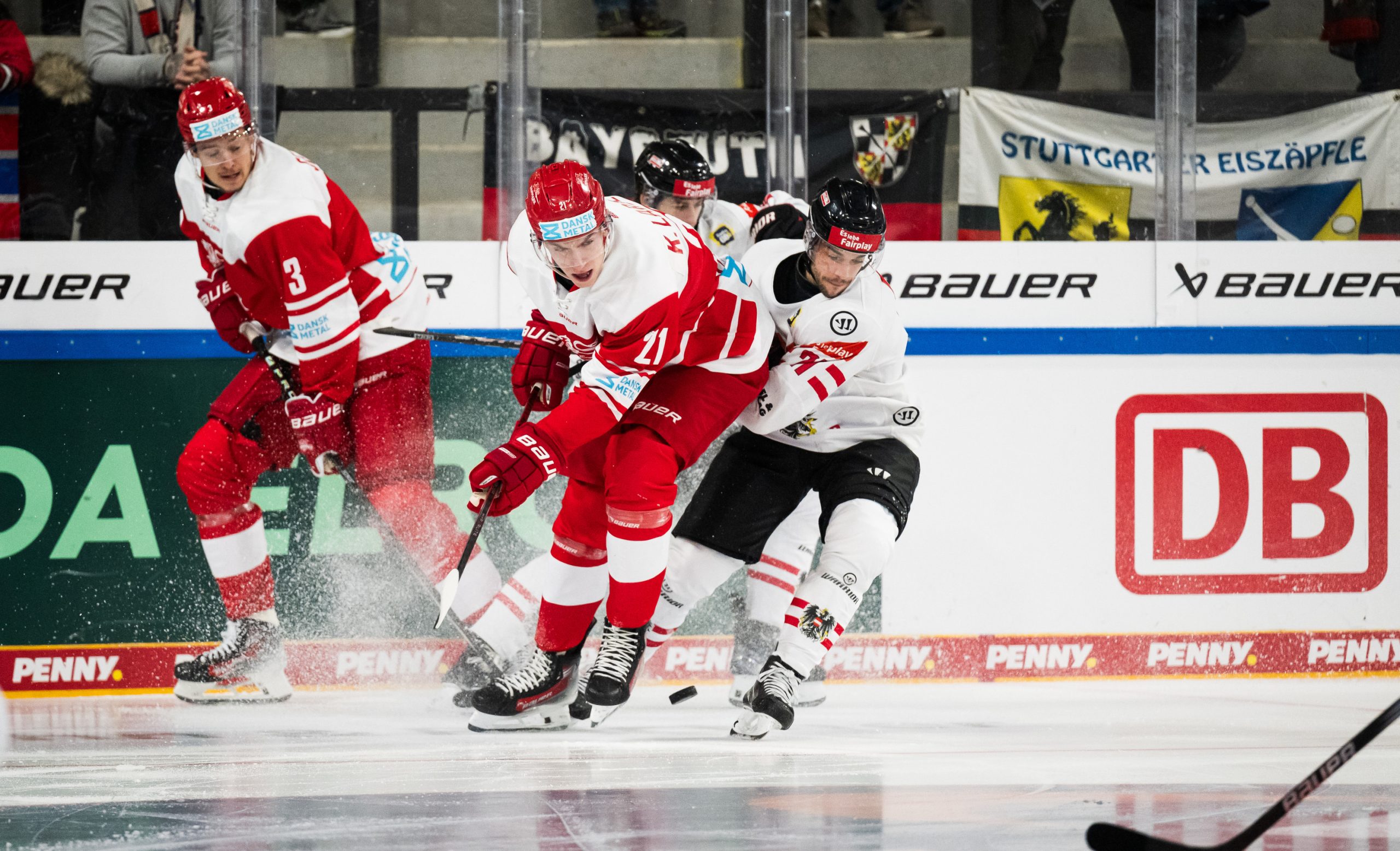 Teamchef Roger Bader brachte mit Verteidiger Patrick Söllinger, Stürmer Felix Maxa und Torhüter Sebastian Wraneschitz drei neue Leute. Wraneschitz wurde in der ersten halben Stunde kaum geprüft, weil seine Vorderleute die favorisierten Dänen gut im Griff hatten und auch ein starkes Penalty-Killing spielten.