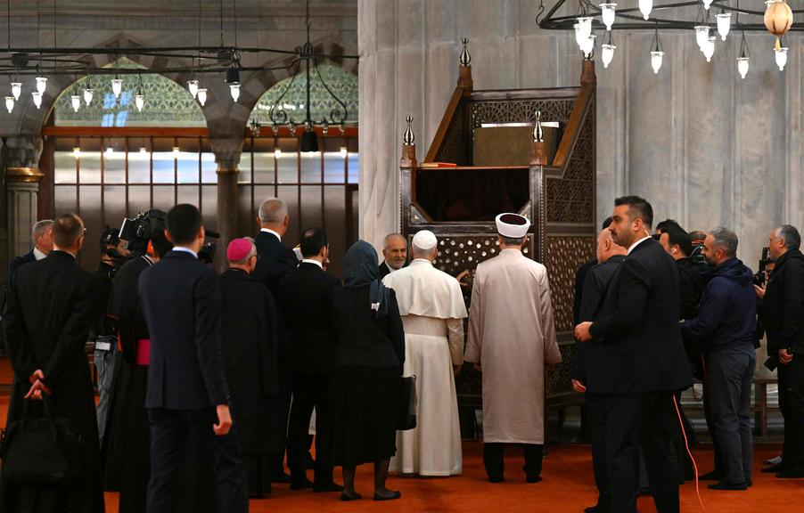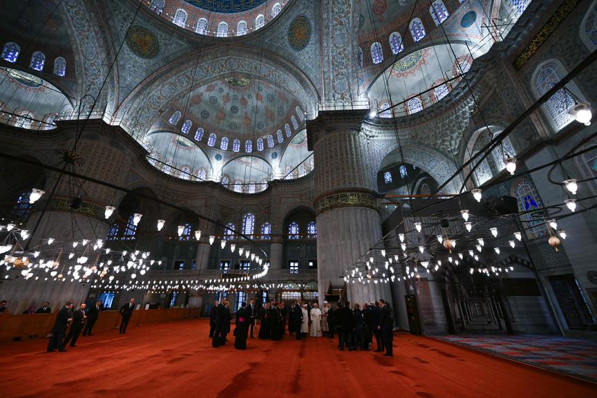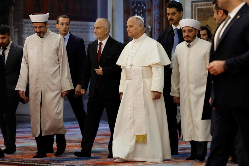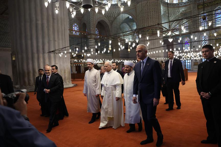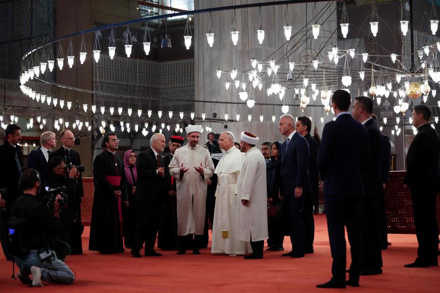 Der Chef der staatlichen Religionsbehörde Diyanet empfing das Oberhaupt der katholischen Kirche in dem auch als Blaue Moschee bekannten islamischen Gotteshaus im Zentrum der Millionenmetropole. Leo betrat das Gebäude vorschriftsgemäß ohne Schuhe. Der Besuch fand unter hohen Sicherheitsvorkehrungen statt.