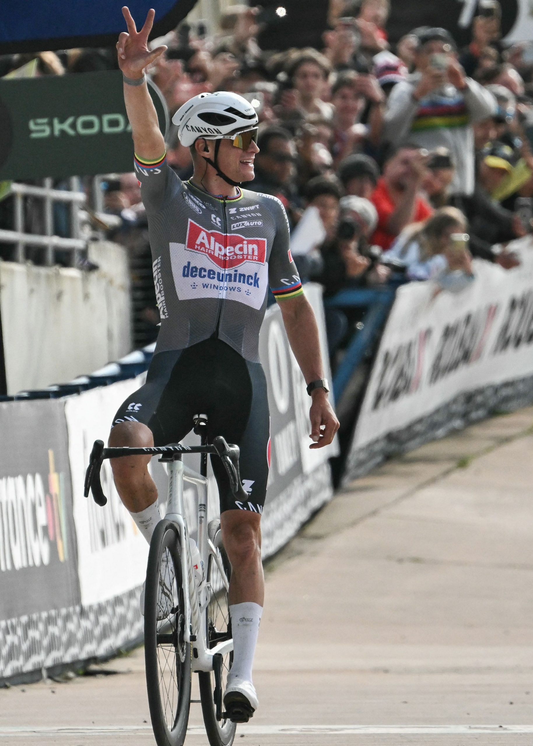 Mathieu van der Poel gewann Paris-Roubaix 2025 mit über einer Minute Vorsprung und reiht sich mit seinem dritten Sieg in Folge in die Geschichtsbücher ein – nur zwei Fahrern vor ihm war dieses Kunststück gelungen.