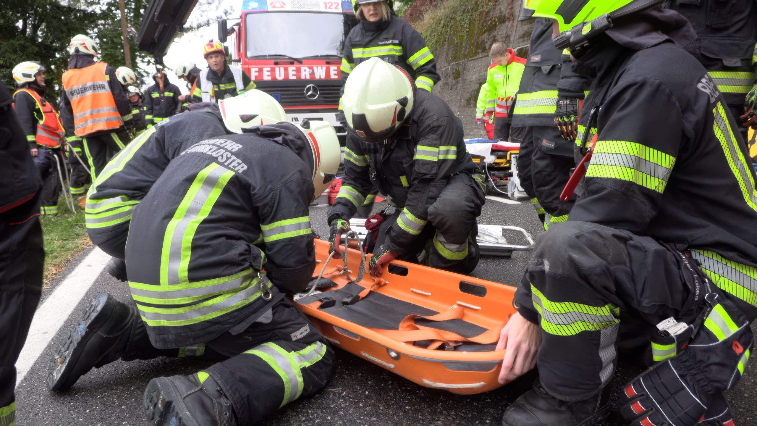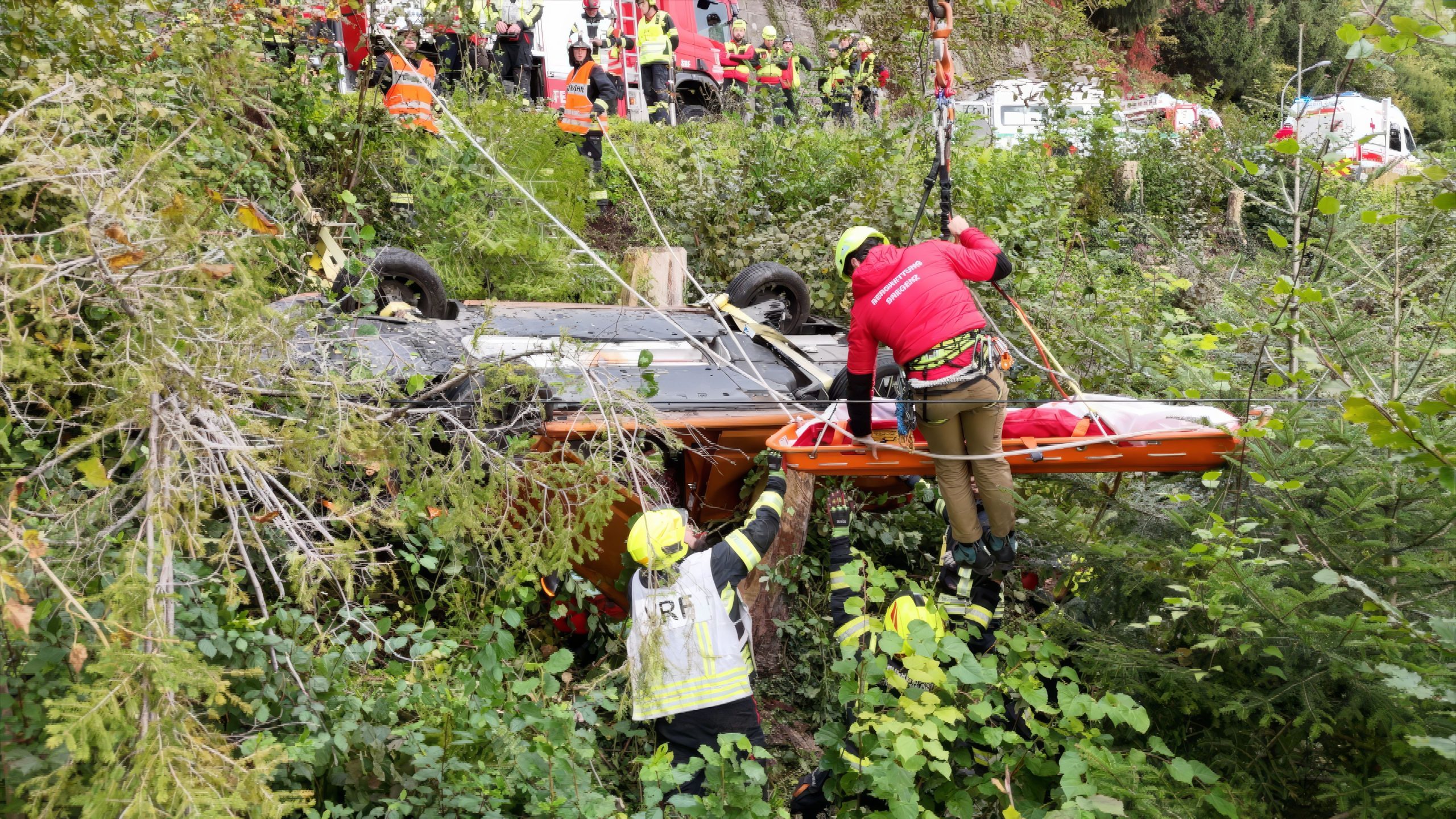Ein Schweizer Ehepaar, beide im Pensionsalter, war im Wagen eingeklemmt. Die Feuerwehr musste hydraulisches Rettungsgerät einsetzen, zusätzlich wurde die Bergrettung alarmiert. Mit Unterstützung eines Feuerwehrkrans aus Bregenz-Vorkloster konnten die beiden Personen nach einer aufwendigen Rettungsaktion aus dem Fahrzeug befreit werden.