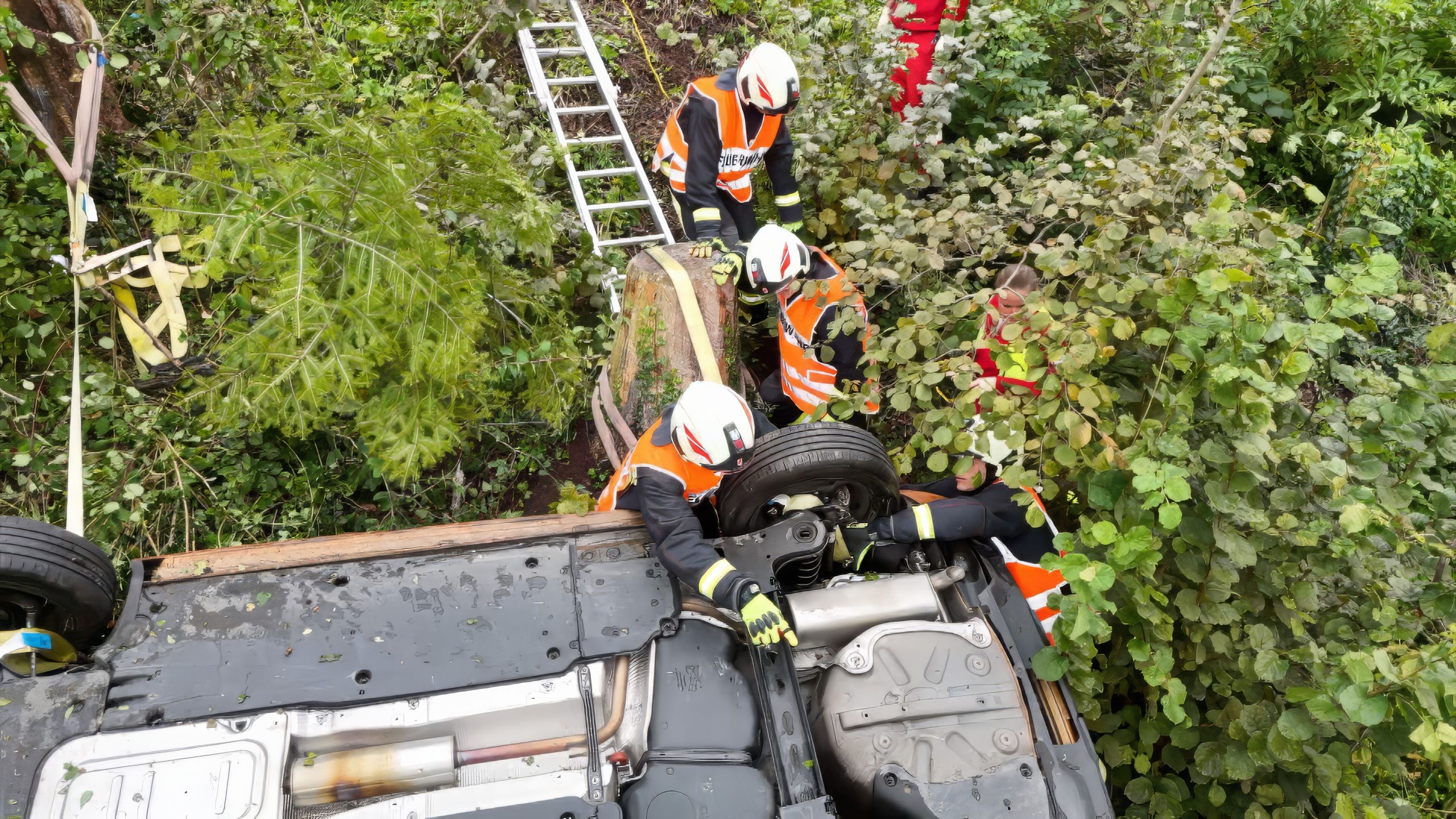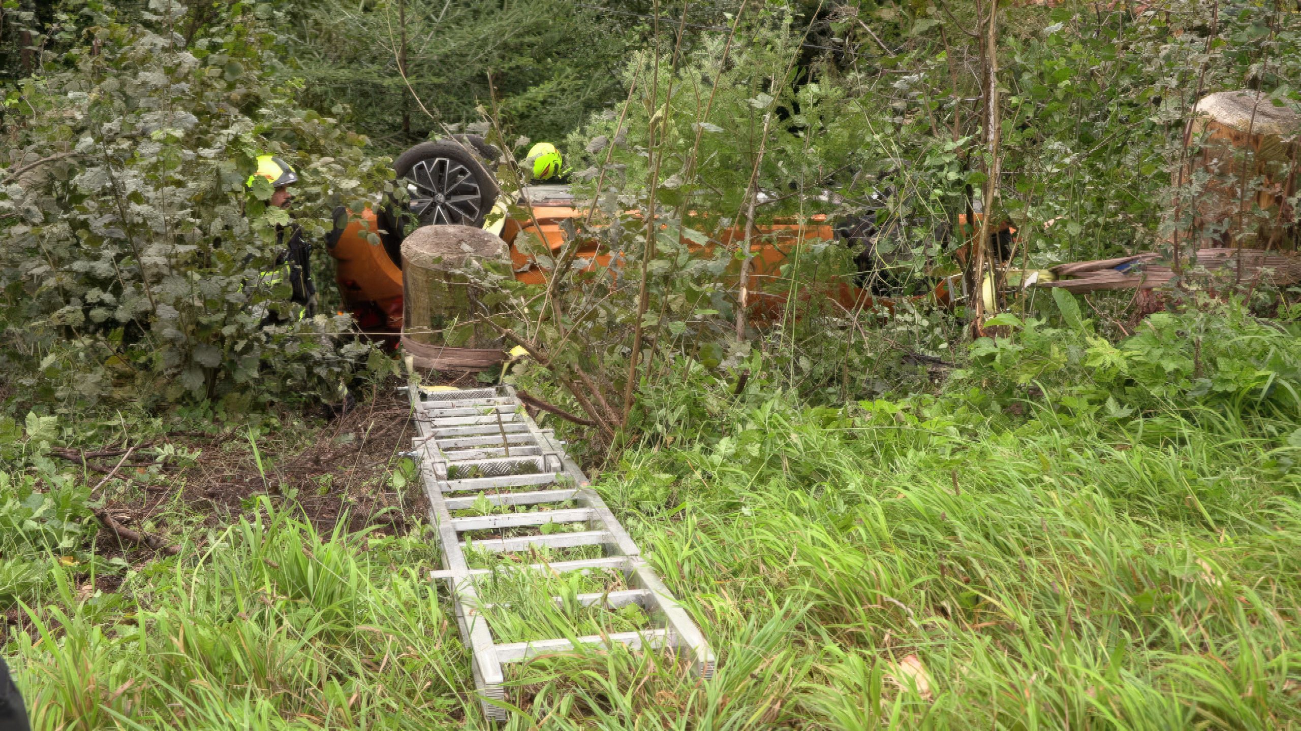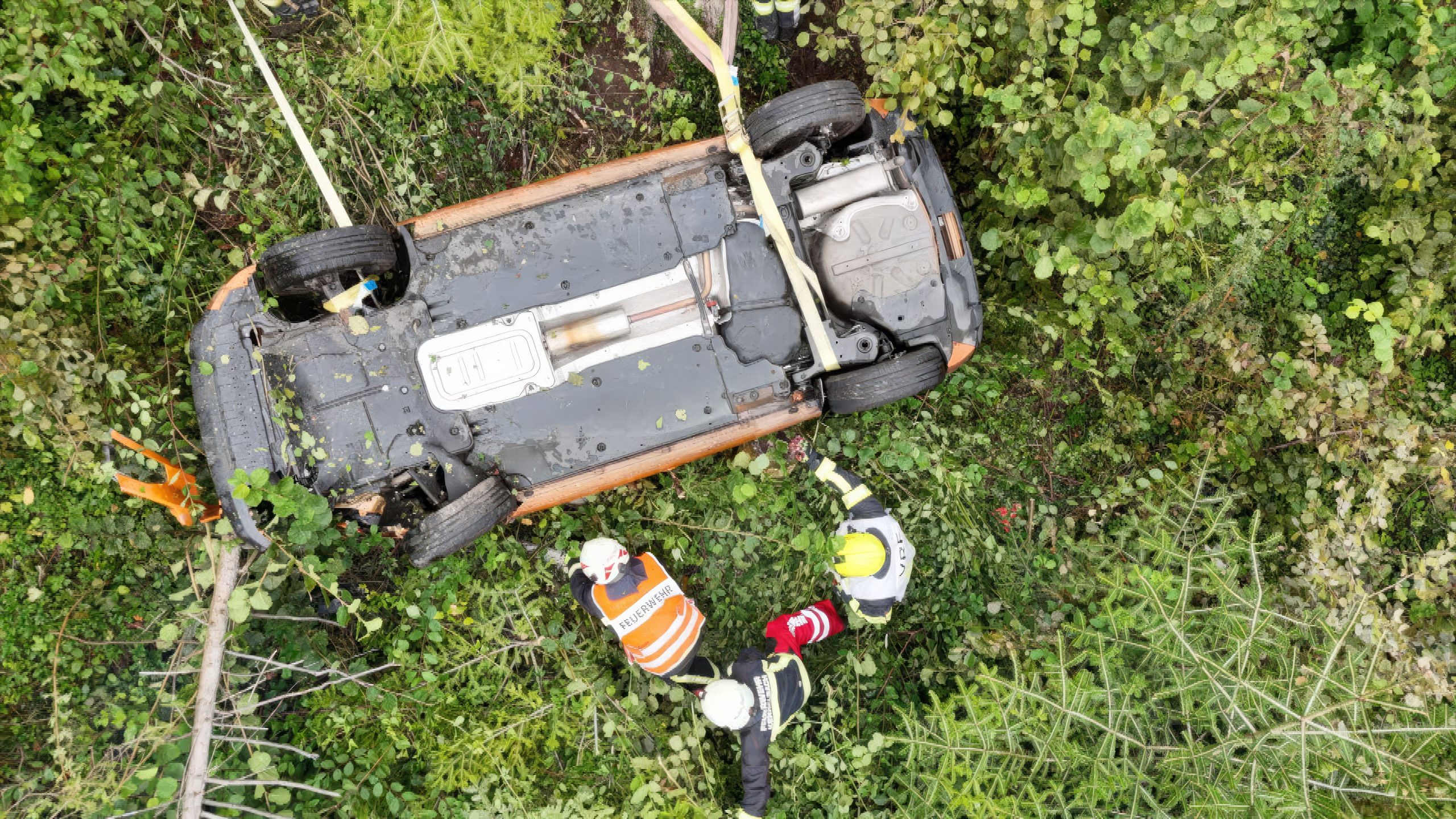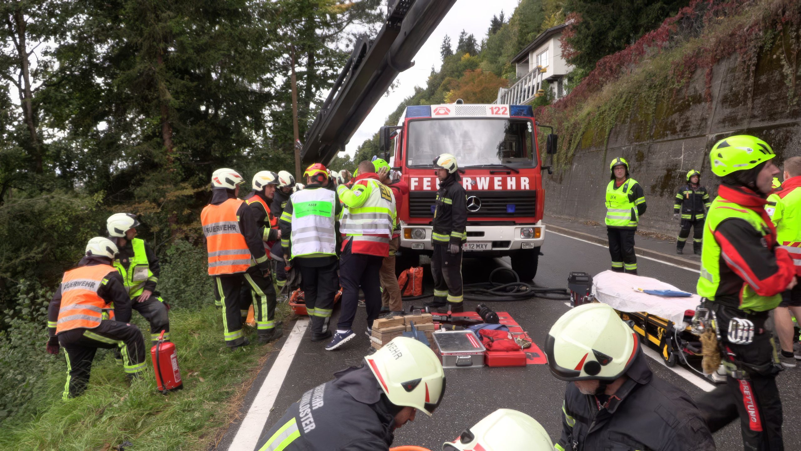 Pkw auf Langener Straße 20 Meter abgestürzt - Ehepaar eingeklemmt