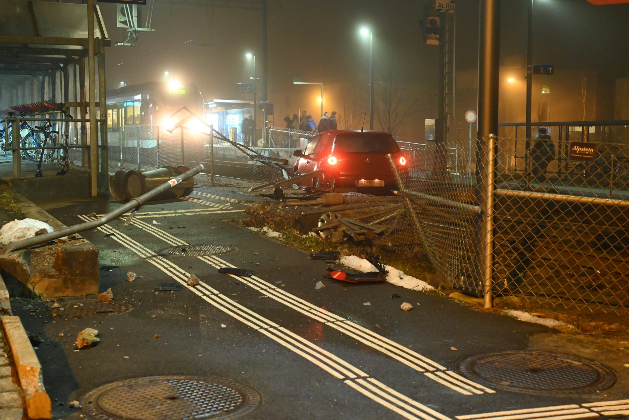 Ein 66-jähriger Mann fuhr mit seinem Auto auf der Thalerstrasse von Staad Buechen herkommend in Richtung Staad Hauptstraße. Auf Höhe Mosti Staad fuhr er mit seinem Auto geradeaus über die Gegenfahrbahn, wo es gegen mehrere Pfosten prallte und einen Zaun durchschlug. Das Auto kam schließlich auf den Bahngleisen zum Stillstand. Der unverletzte 66-Jährige verließ danach sein Auto und begab sich in allgemeine Richtung Hauptstraße und dort zum Seeufer.