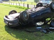 Aufgrund der hohen Geschwindigkeit überschlug sich der Pkw mehrmals auf der Überholspur hinter dem Lkw und kam in einer angrenzenden Wiese auf dem Dach zum Liegen. Verletzt wurde niemand. Am Pkw entstand Totalschaden. SID
