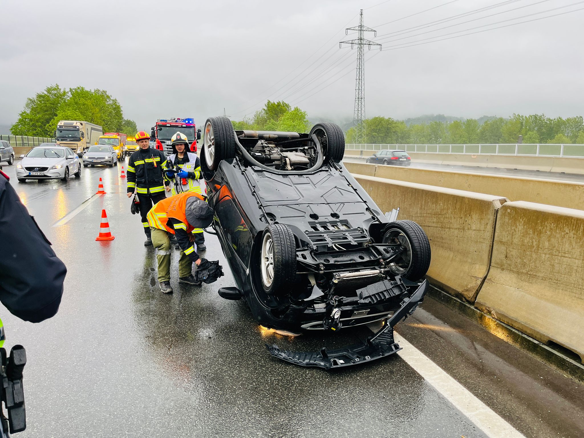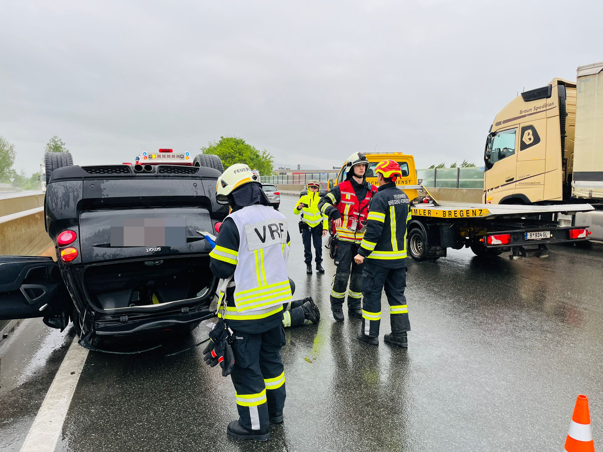 Am Donnerstagmorgen gegen 8 Uhr kam es auf der A14 zwischen Wolfurt und Dornbirn Nord zu einem schweren Verkehrsunfall. Aus bisher ungeklärten Gründen überschlug sich ein Pkw und kam auf dem Dach zum Liegen. Die Unfallursache ist noch unklar, ebenso ob es Verletzte gibt.