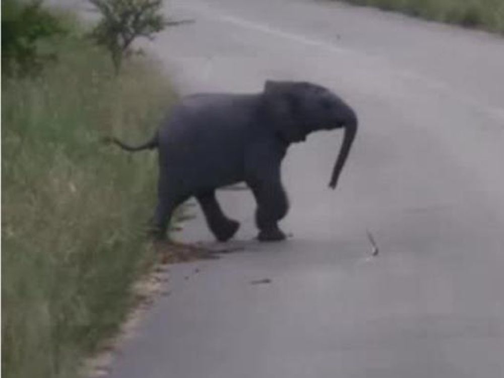 Dieses Elefanten-Baby ist ein besonders süßes Exemplar: Auf seine tollpatschige Art versucht das Jungtier, eine Horde Vögel von der Straße zu vertreiben.