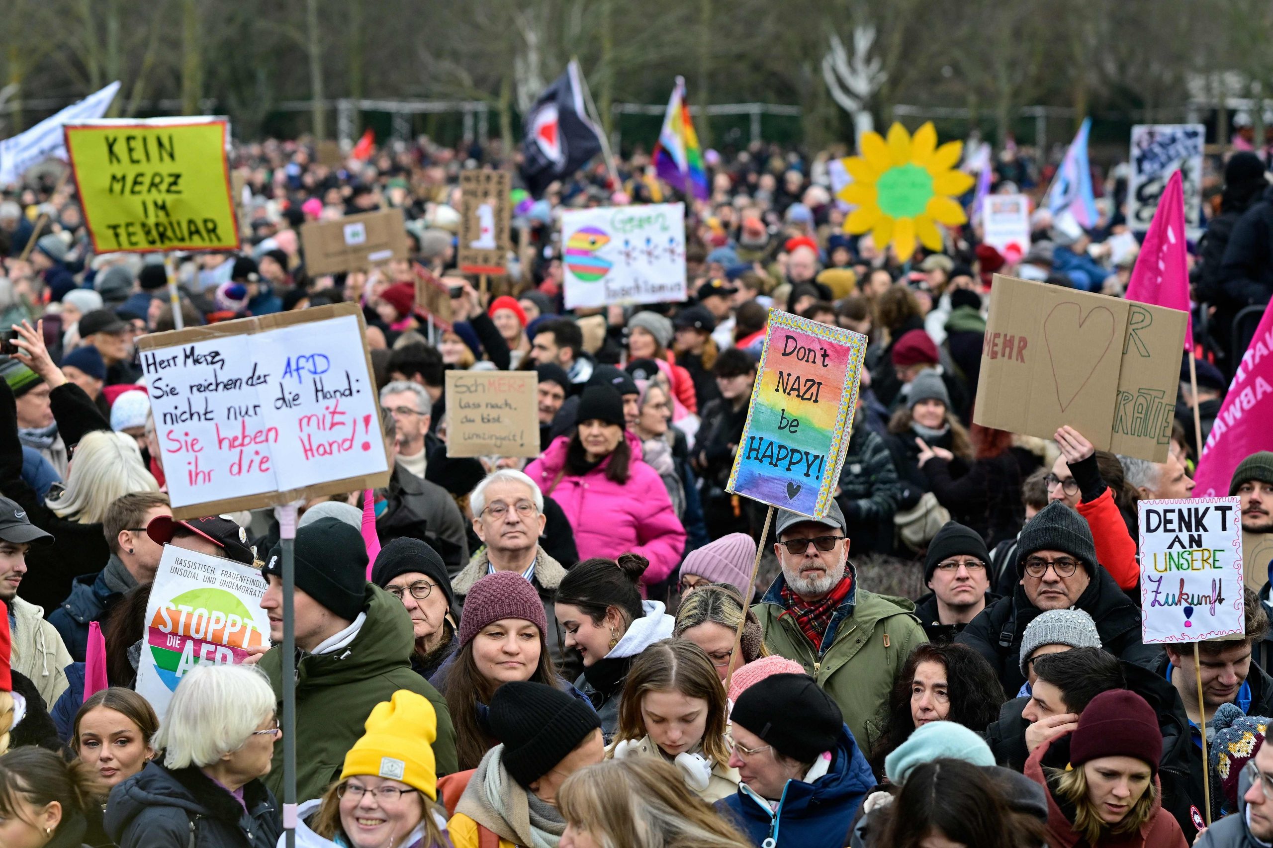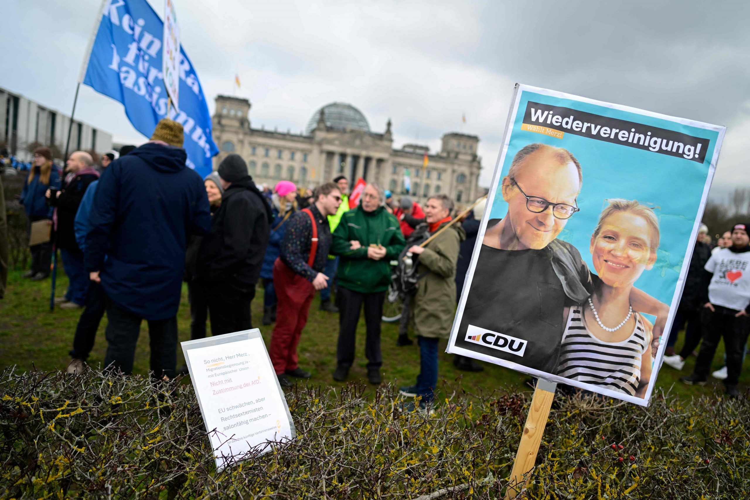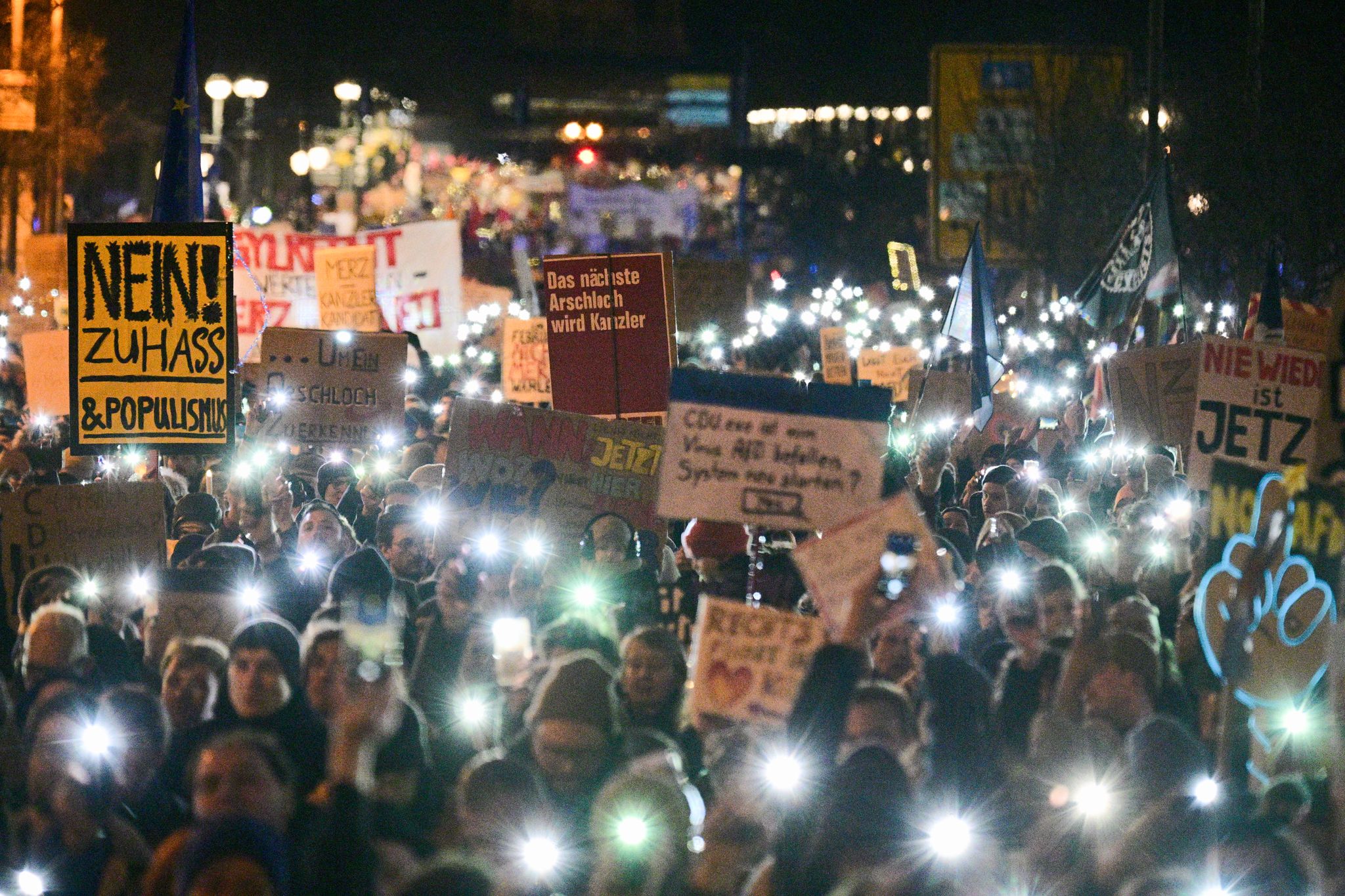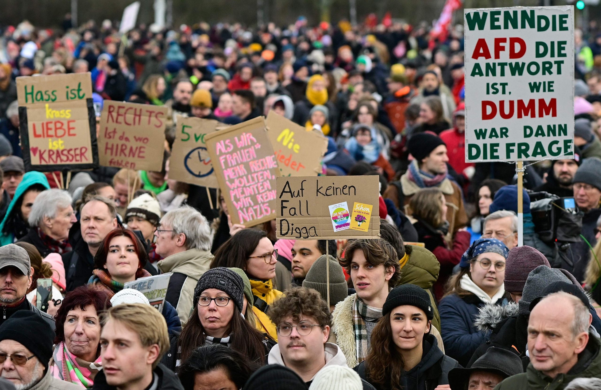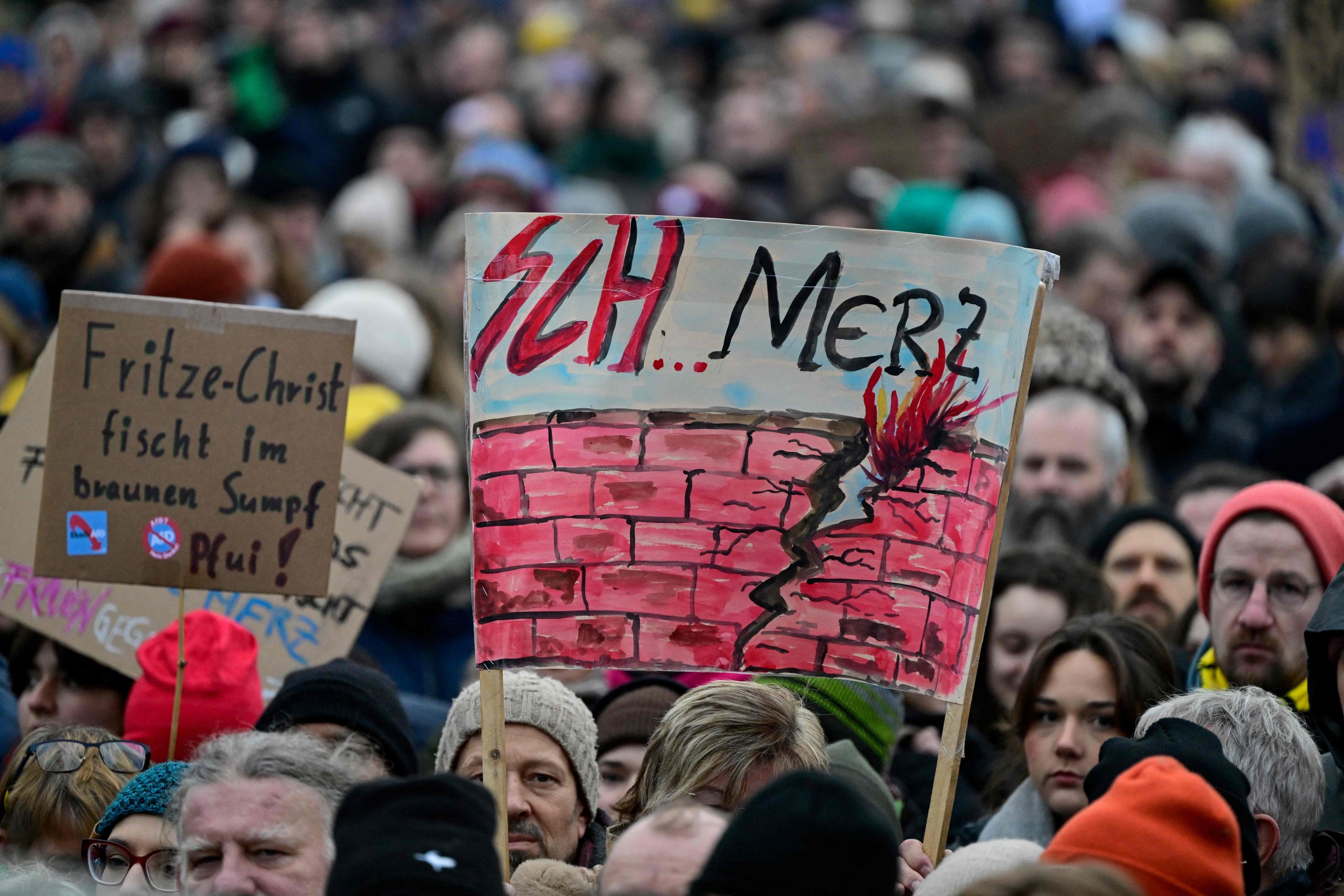 Die Demonstration steht unter dem Motto "Aufstand der Anständigen - Wir sind die Brandmauer!" Dazu aufgerufen hat das Kampagnenbündnis Campact. Der Protest richtet sich vor allem gegen die Union, deren Antrag für Zurückweisungen an deutschen Grenzen am Mittwoch im Bundestag eine Mehrheit auch mit den Stimmen der AfD erhalten hatte.