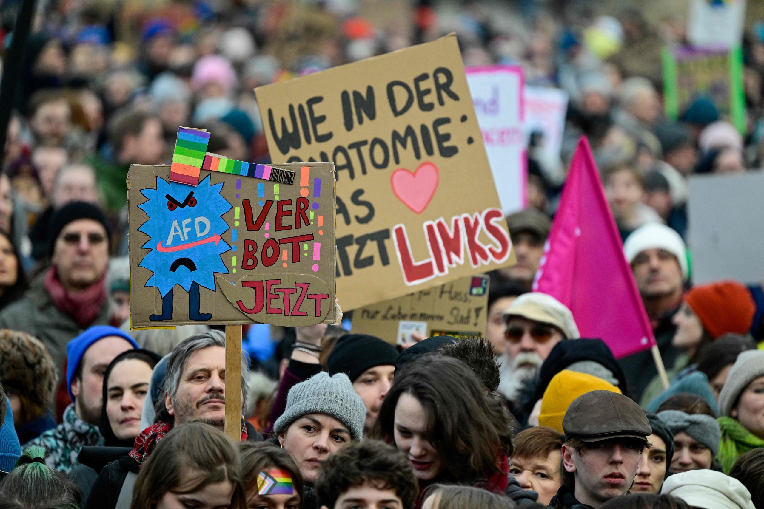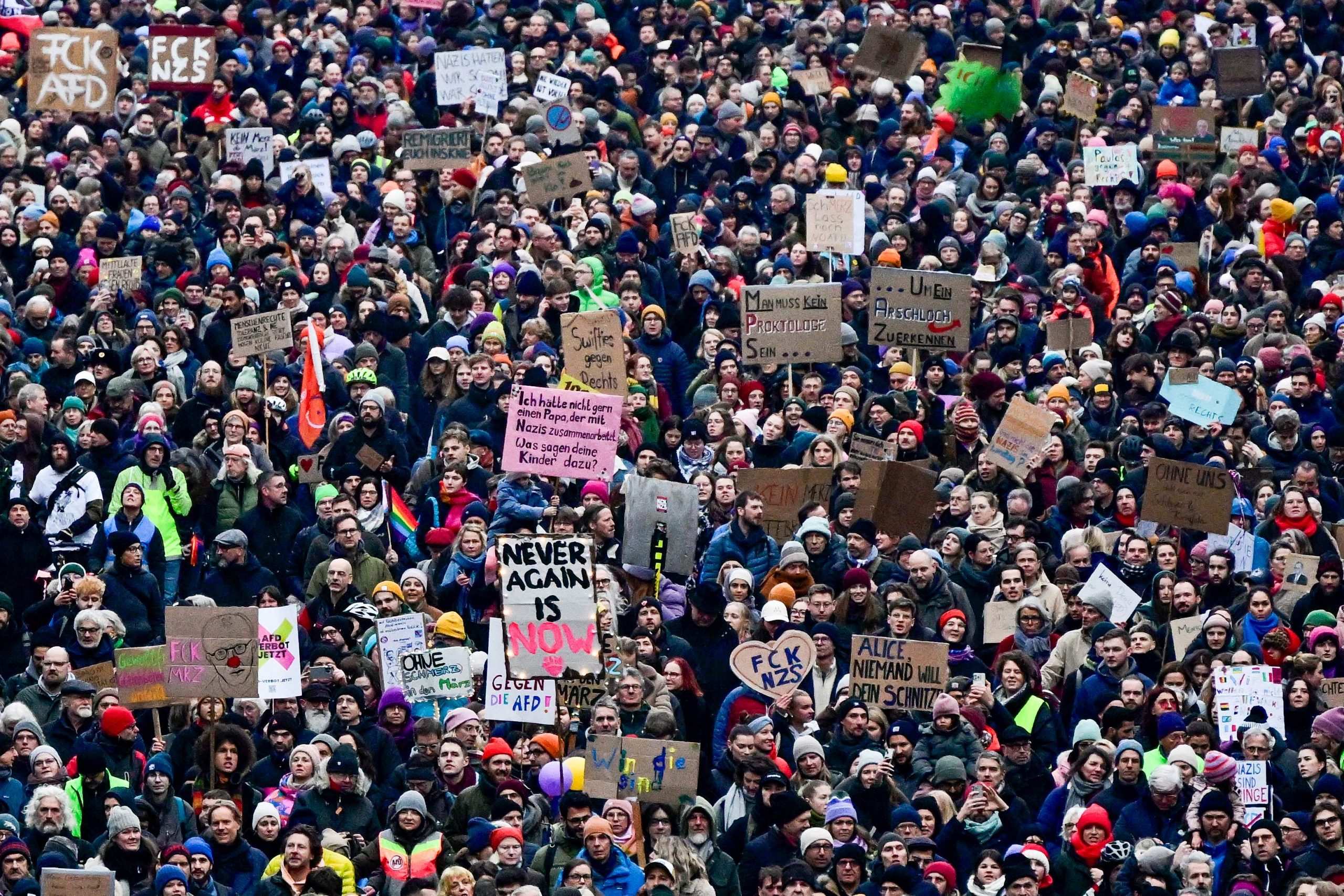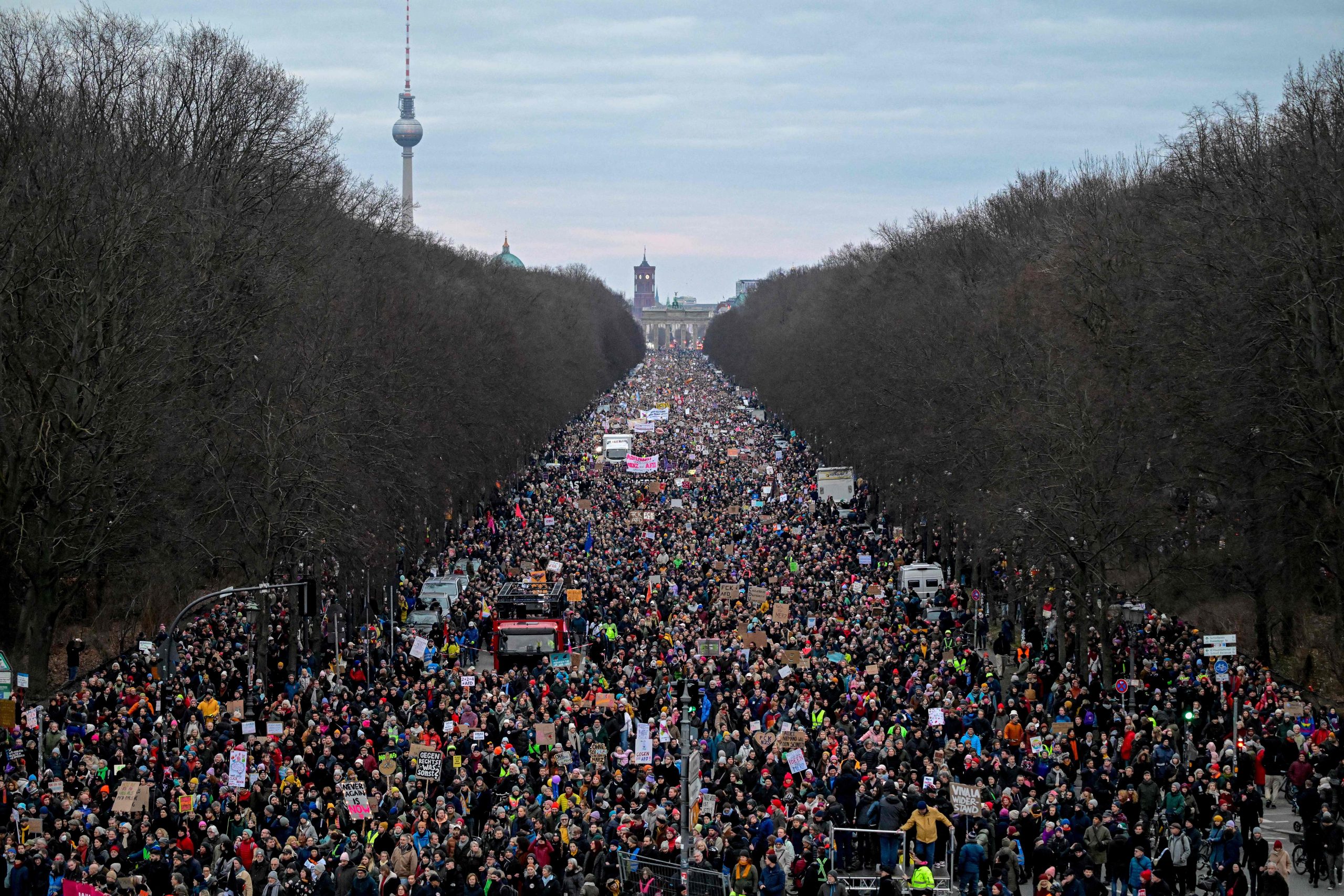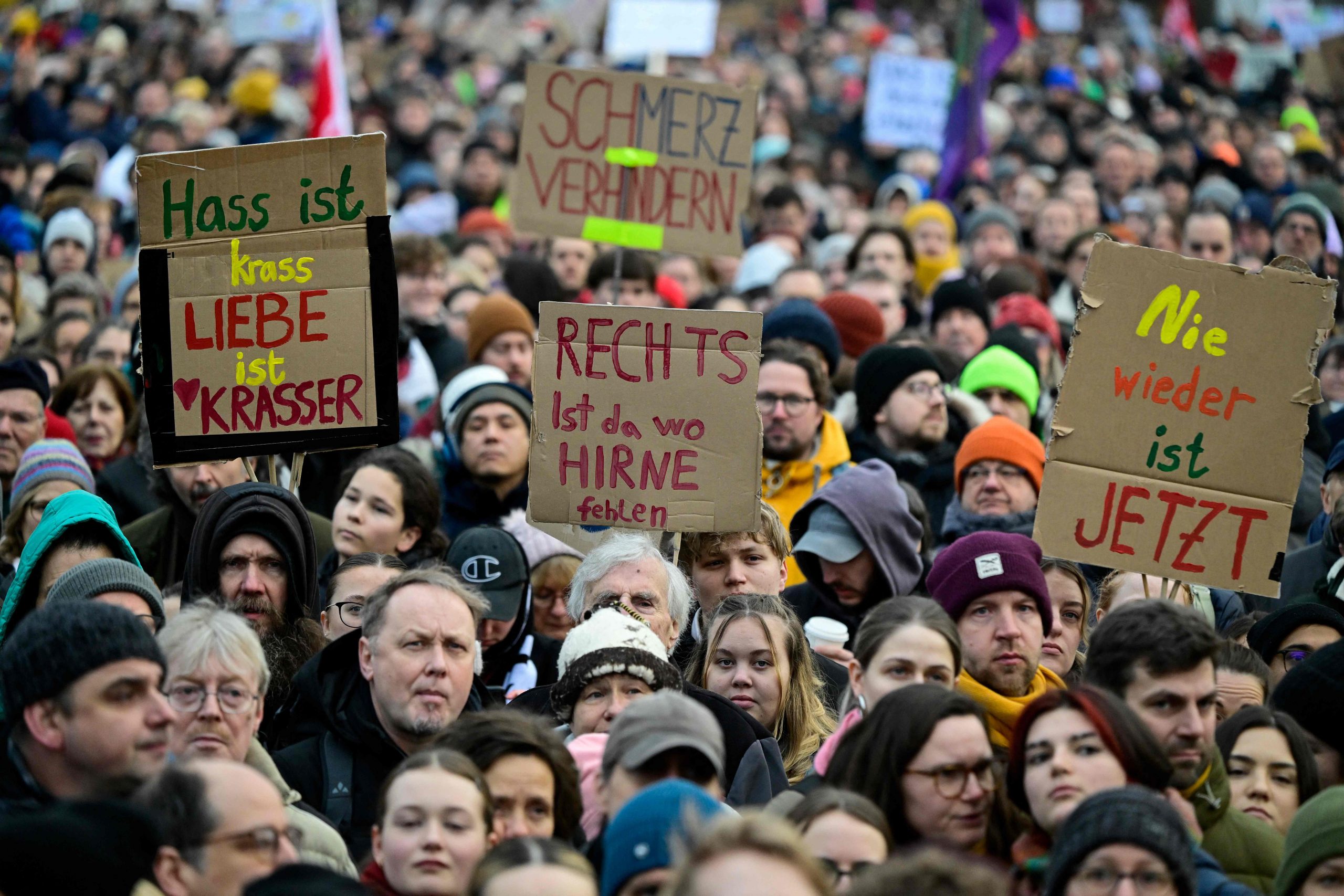 Die Demonstration steht unter dem Motto "Aufstand der Anständigen - Wir sind die Brandmauer!" Dazu aufgerufen hat das Kampagnenbündnis Campact. Der Protest richtet sich vor allem gegen die Union, deren Antrag für Zurückweisungen an deutschen Grenzen am Mittwoch im Bundestag eine Mehrheit auch mit den Stimmen der AfD erhalten hatte.