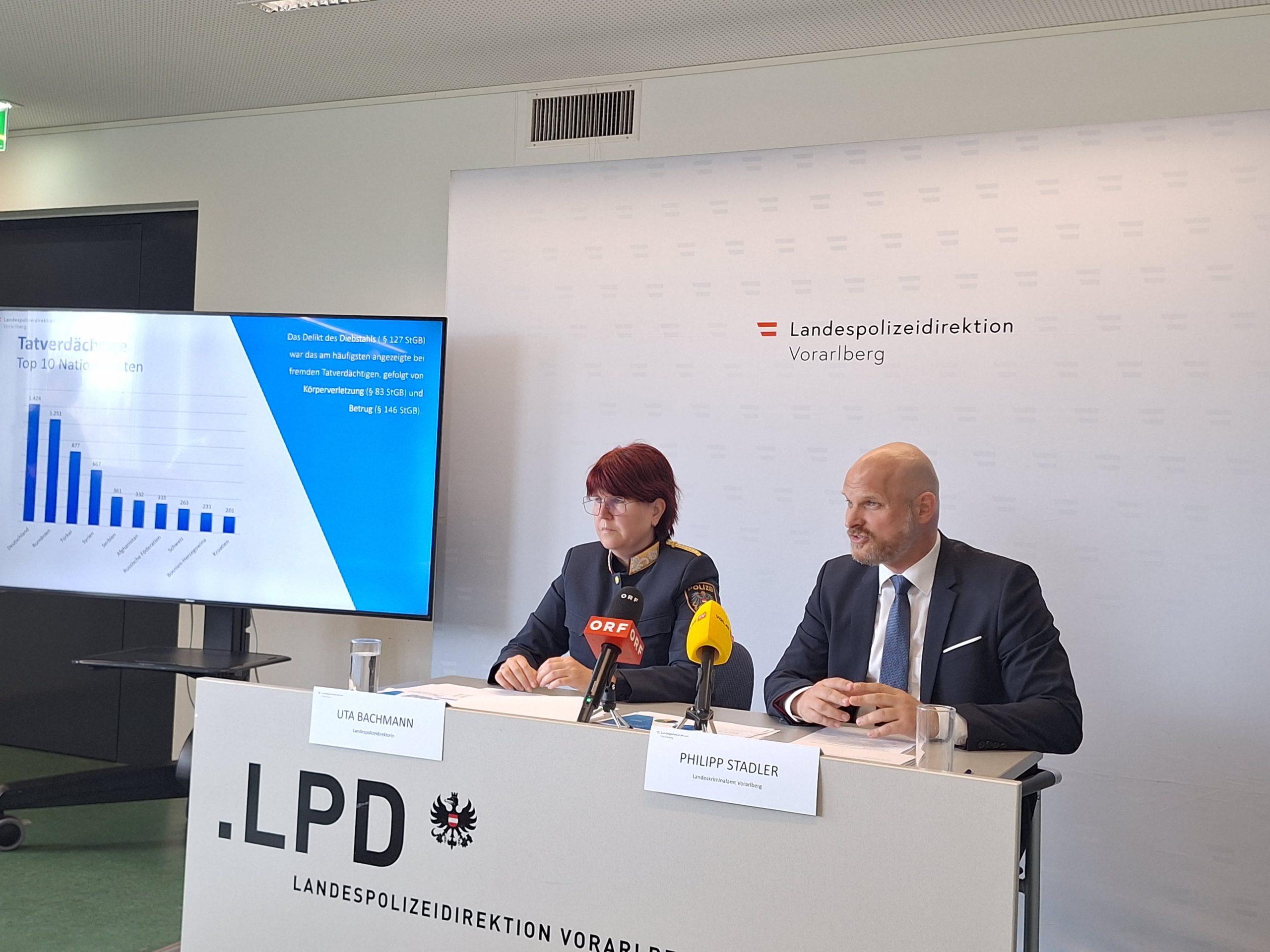 Am frühen Montagnachmittag präsentierte die Landespolizeidirektion Vorarlberg die polizeiliche Anzeigenstatistik des vergangenen Jahres. Landespolizeidirektorin Uta Bachmann und der Leiter des Landeskriminalamtes Vorarlberg Philipp Stadler informierten.