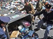 In der Nacht auf Freitag mussten Feuerwehrmannschaften wiederholt ausrücken, nachdem Bürger die riesigen Müllberge in Brand gesetzt hatten. 2.500 Tonnen Unrat türmten sich wieder seit einigen Tagen auf den Straßen der Vesuvstadt.