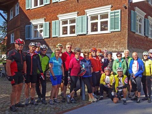 Fritz Hartenthaler aus Dornbirn begleitete etwa die Hälfte der insgesamt 24 Sportfreunde, die am sonnigen 15. September 2015 mitmachten, von Wolfurt über Buch nach Alberschwende, den Achrain nach Hohenems. Einkehrschwung gab´s beim „Steirer“ in Dornbirn. Leopold Hrach aus Lauterach führte seine Gruppe von Buch aus weiter nach Oberbildstein, Farnacher Moor nach Alberschwende. Im dortigen „Cäsar“ wurde Abschied gefeiert und noch einmal der 50 Kilometer und den 900 Höhenmetern gedacht. Damit wurde das Rad-Programm des Freundeskreises „Team per pedales“ für heuer unfallfrei! erfolgreich abgeschlossen. Ab jetzt gibt es, um die Fitness über den Winter zu halten, regelmäßig Wanderungen!