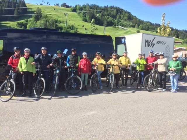 Unter der Leitung von Frau Gabriele Fitz fuhren wir auf dem Bodensee-Königsseeradweg am Großen Alpsee vorbei nach Immenstadt, wo wir uns am Hauptplatz neben der Mariensäule bei Kaffee und Tee aufwärmten. Auf dem Illertalradweg radelten wir dann am Wasserski- und Wakeboardpark vorbei bis Blaichach zum Dorfwirt. Entlang der Iller ging die Fahrt mit wunderschönen Ausblicken auf die Aulandschaft und das Alpenpanorama weiter bis kurz vor Oberstdorf, wo wir am Illerursprung den Zusammenfluss der Breitach, Stillach und Trettach besichtigten sowie auch die Skulptur der liegenden drei Damen von Walter Kalot. Im südlichsten Kneippkurort Deutschlands genossen wir die autofreie Fussgängerzone und die vielen Einkaufsmöglichkeiten, bevor uns unser Fahrer wieder gut nach Hause brachte.