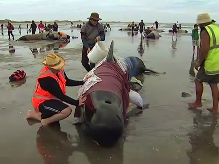 Insgesamt zählte die neuseeländische Naturschutzbehörde DOC (Department of Conservation) an der Landzunge, dem nördlichsten Zipfel der Südinsel, 416 gestrandete Grindwale. Nur etwa 50 davon konnten zurück ins Meer bugsiert werden und schwammen dann davon. Mehrere Dutzend andere Tiere kehrten jedoch gleich wieder an den Strand zurück. Überall lagen Kadaver herum.