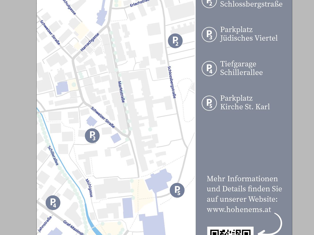 Beachten Sie gerne auch beiliegenden Übersichtsplan. Alle Infos zum Parken in Hohenems finden Sie auch unter www.hohenems.at/parken!
