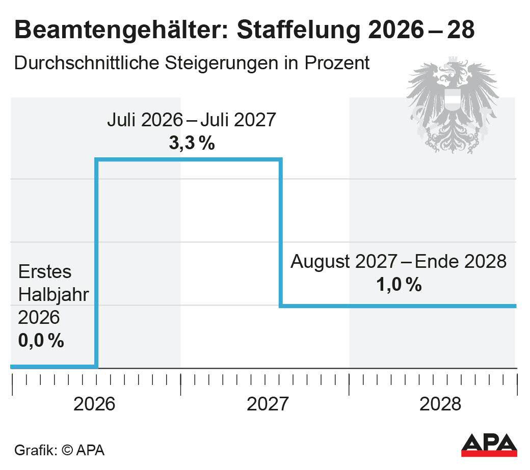 The Chairman of the Union of Public Service (GÖD), Eckehard Quin, addressed his members in a video message. He argued that the salaries would be adjusted by 3.3 percent next year (albeit only from mid-year), which is certainly one of the highest conclusions in the fall and strengthens purchasing power accordingly. It is "wrong" that the salary adjustment averages 1.5 percent annually, as the government had announced. By 2028, salaries would increase by an average of 5.4 percent, Quin emphasized.