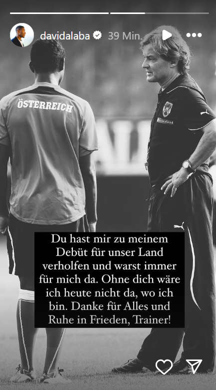 Neben den Vereinen äußerten sich auch einige Fußballstars, unter anderem David Alaba. Auf Instagram schrieb der 32-Jährige: "Du hast mir zu meinem Debüt für unser Land verholfen und warst immer für mich da. Ohne dich wäre ich heute nicht da, wo ich bin. Danke für Alles und Ruhe in Frieden, Trainer!"
