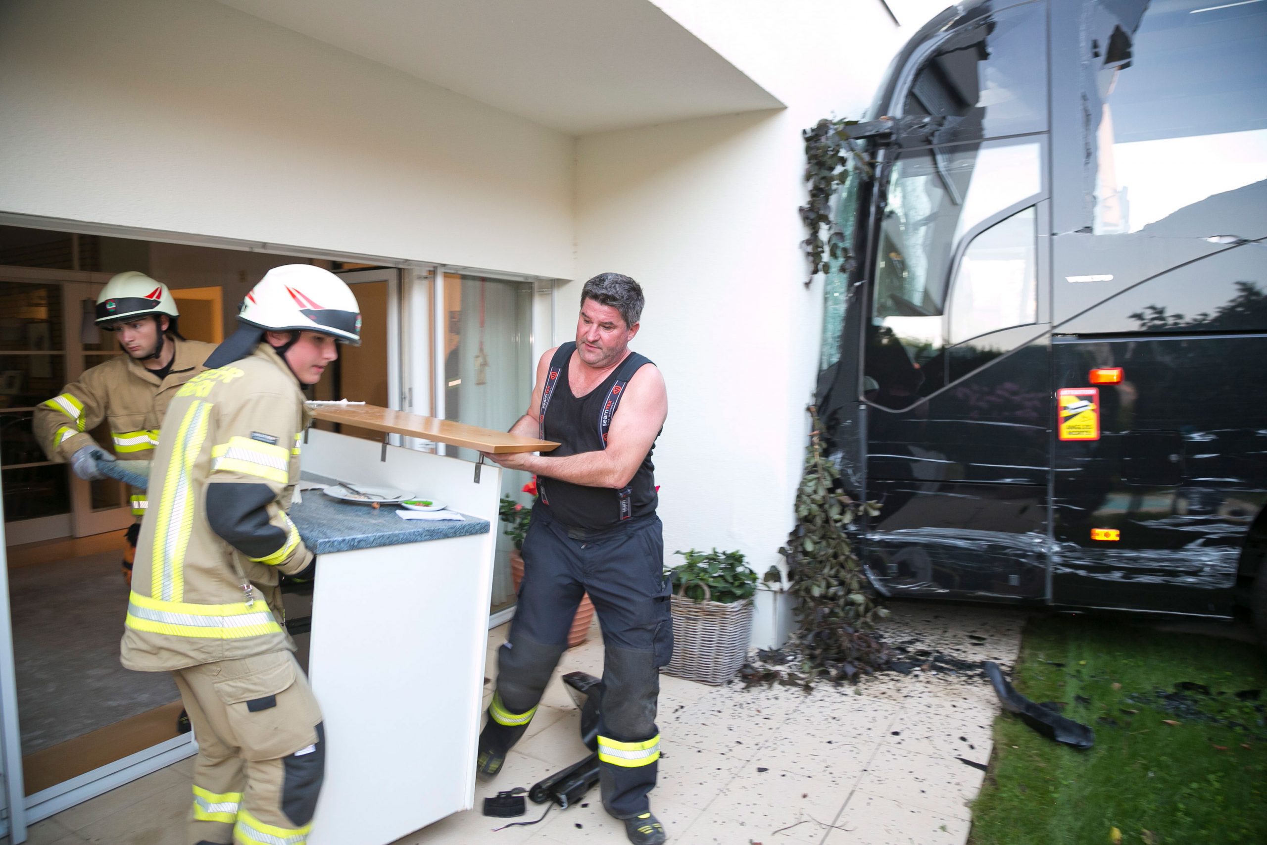 Reisebus-Unfall auf Firmengelände in Dornbirn