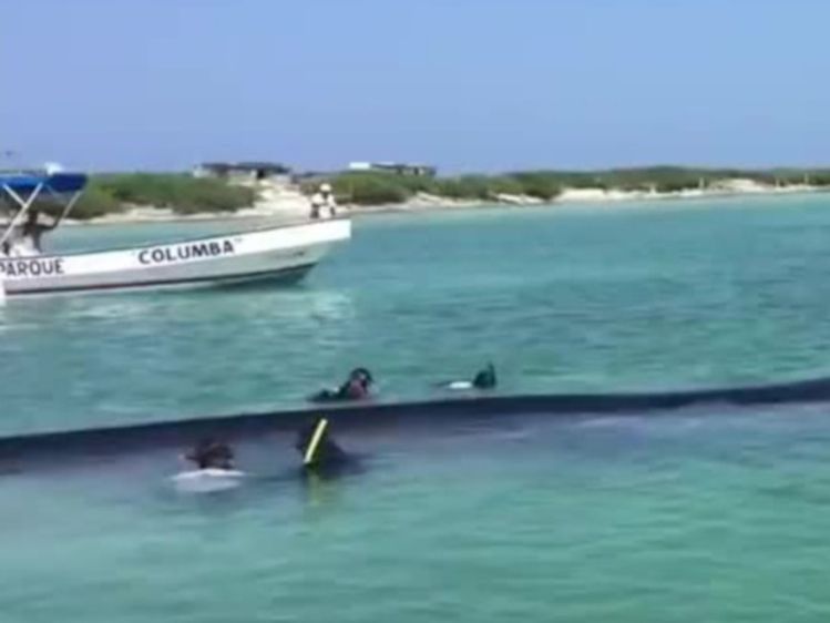 Umweltschützer haben in Mexiko einen 18 Meter langen Finnwal zurück ins Meer geholfen. Das Tier war am Montag an der Küste der Karibikinsel Contoy gestrandet. Mit Hilfe von Seilen, die um den Meeressäuger gelegt wurden, konnte er wieder in das offene Meer manövriert werden. An der Rettung beteiligten sich mehr als 40 Helfer.