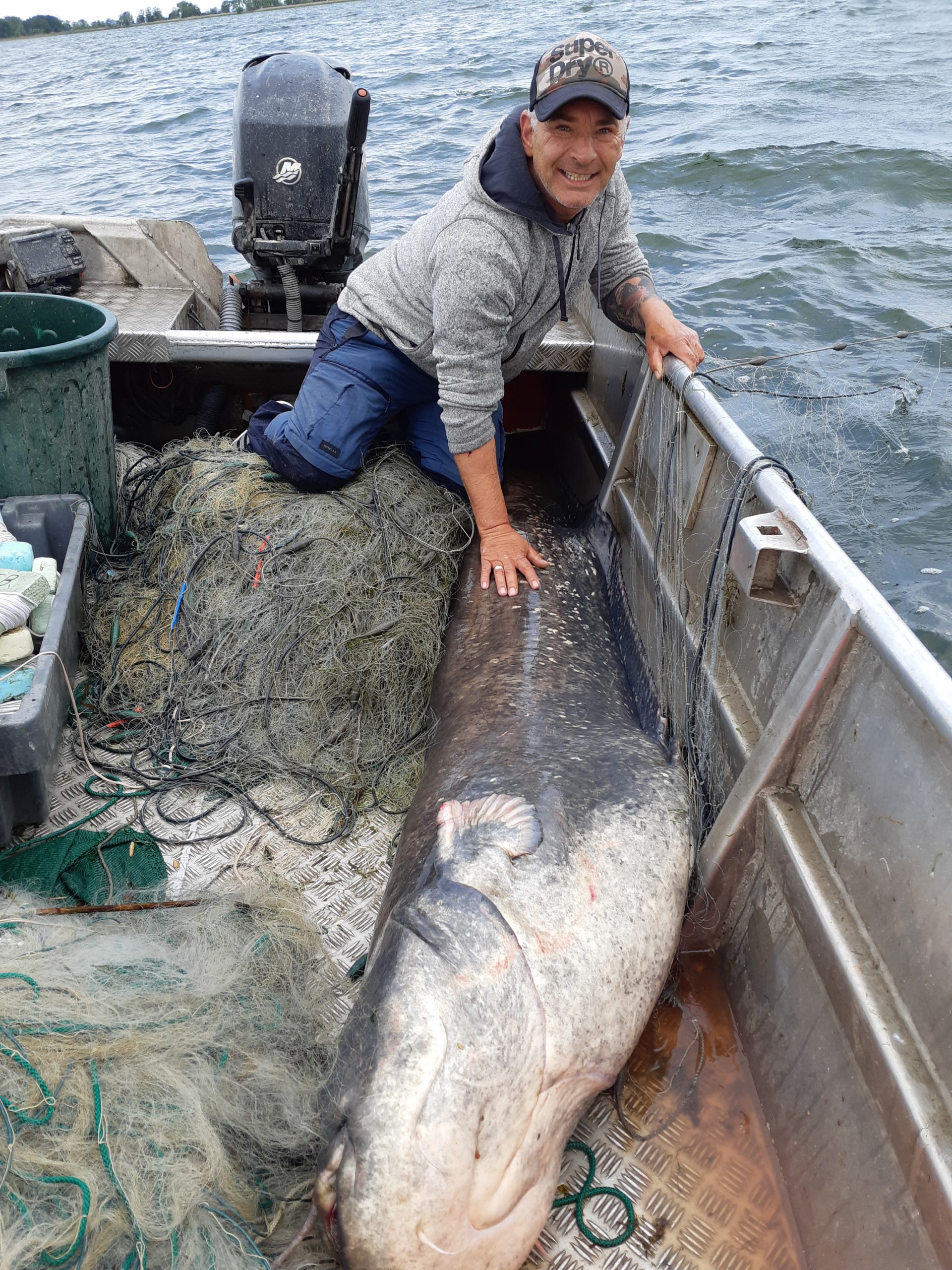 Berufsfischer Franz Blum vor seinem bisher größten Wels.