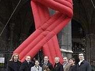 Die für Antidiskriminierung zuständige Wiener Stadträtin Sandra Frauenberger und Gesundheits- und Sozialstadträtin Sonja Wehsely, Aids Life-Obmann Gery Keszler, Aids Hilfe Wien-Obmann Dennis Beck und Aids Hilfe Wien-Geschäftsführer Philipp Dirnberger, Brigitte Schmied, Präsidentin der Österreichischen AIDS-Gesellschaft, sowie Gela Schwarz und Wolfgang Wilhelm von der Wiener Antidiskriminierungsstelle für gleichgeschlechtliche Lebensweisen (WASt) hissten am Freitag, am Wiener Rathaus ein Red Ribbon als sichtbares Symbol der Solidarität der Stadt Wien mit allen von HIV und AIDS Betroffenen.