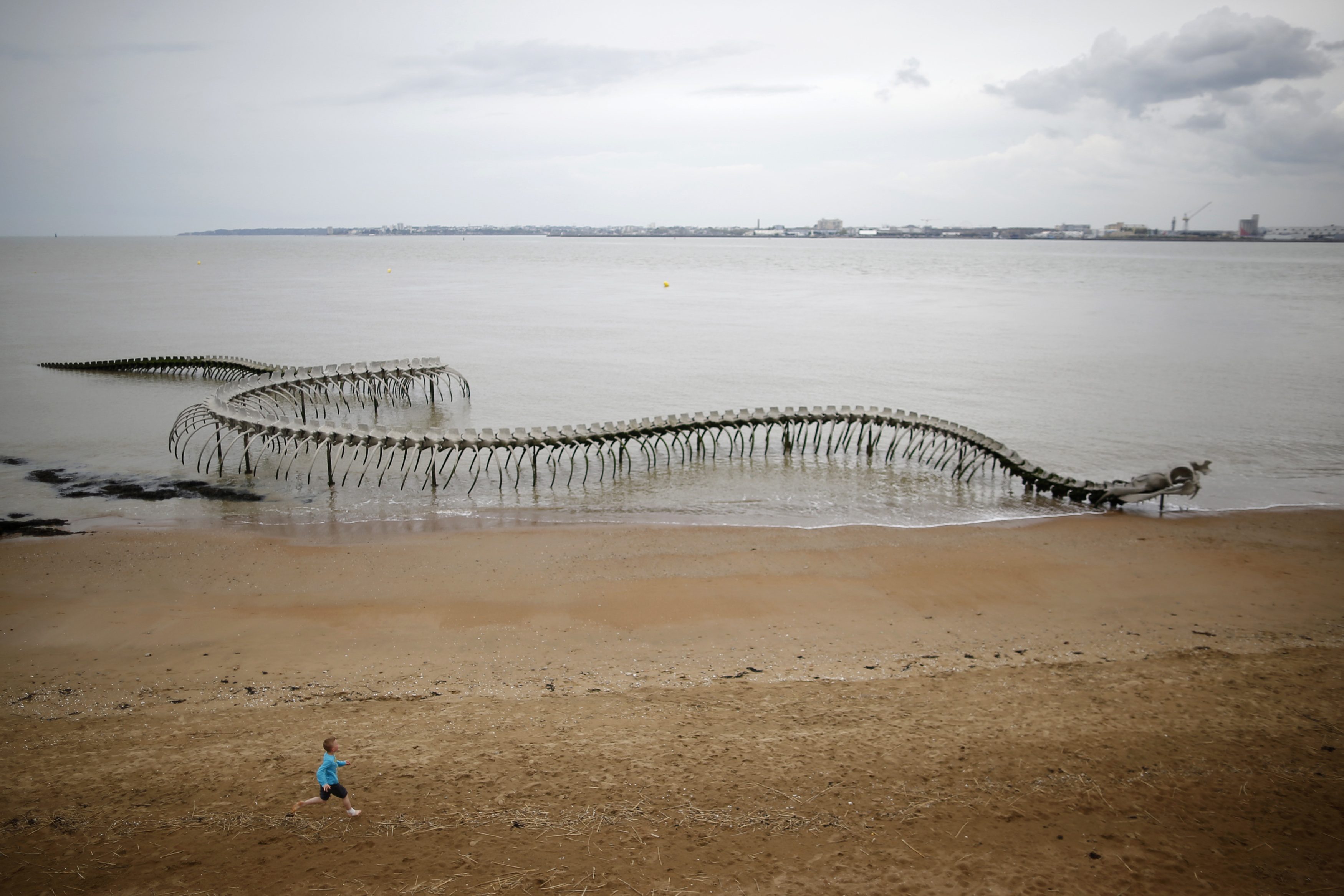 Doch wenn man das Meeresungeheuer ganz genau anschaut, handelt es sich dabei um eine 130 Meter lange Aluminium-Skulptur des Künstlers Huang Yong Ping und wird "Serpent d'Océan" genannt. Besonders spannend: Bei Ebbe taucht die Skulptur auf, bei Flut verschwindet sie wieder im Atlantik.