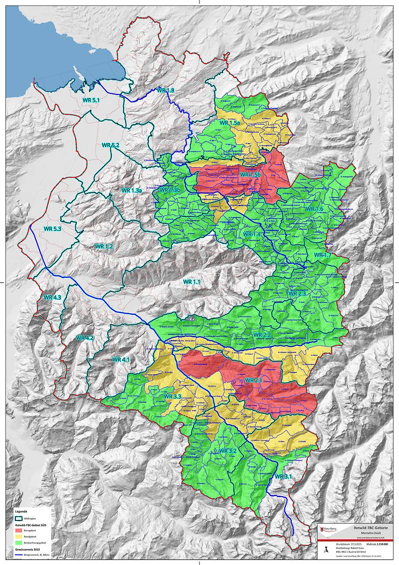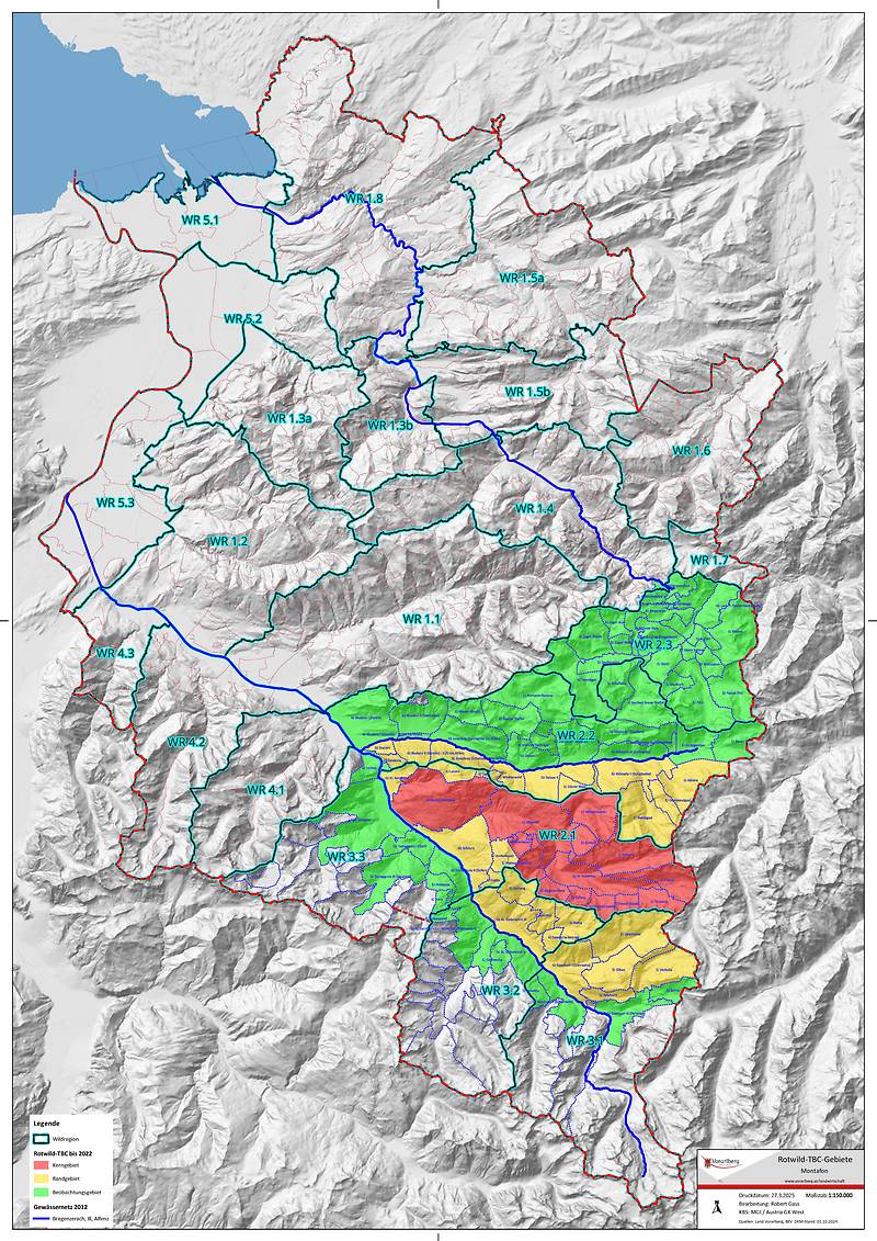 Als Reaktion auf die gestiegenen Fallzahlen wurde im Frühjahr rund die Hälfte des Landes zum Tbc-Bekämpfungsgebiet erklärt. Neu betroffen ist nun auch der Bregenzerwald, der sich künftig gemeinsam mit dem Montafon bis zur Schweizer Grenze erstreckt.