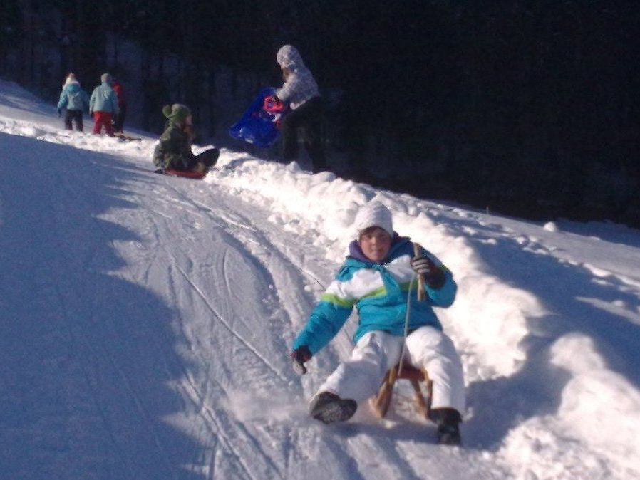 Hittisau. Aufgrund der ausgezeichneten Schneelage im Bregenzerwald kommen momentan auch die Rodler auf ihre Kosten. So auch in Hittisau, am Fuße des Roten Bergs, wo Josef Peter Nußbaumer eine perfekte Rodelbahn präpariert hat. Die 2a-Klasse der Mittelschule Hittisau konnte diese heute bei Prachtwetter testen. Nach einem wärmenden Tee, den die Gattin des „Pistenbauers“, Barbara Nußbaumer den Schülerinnen und Schülern im Anschluss an die Rodelpartie offerierte, waren sich alle einig: „Das war Spitze, wir kommen wieder!“