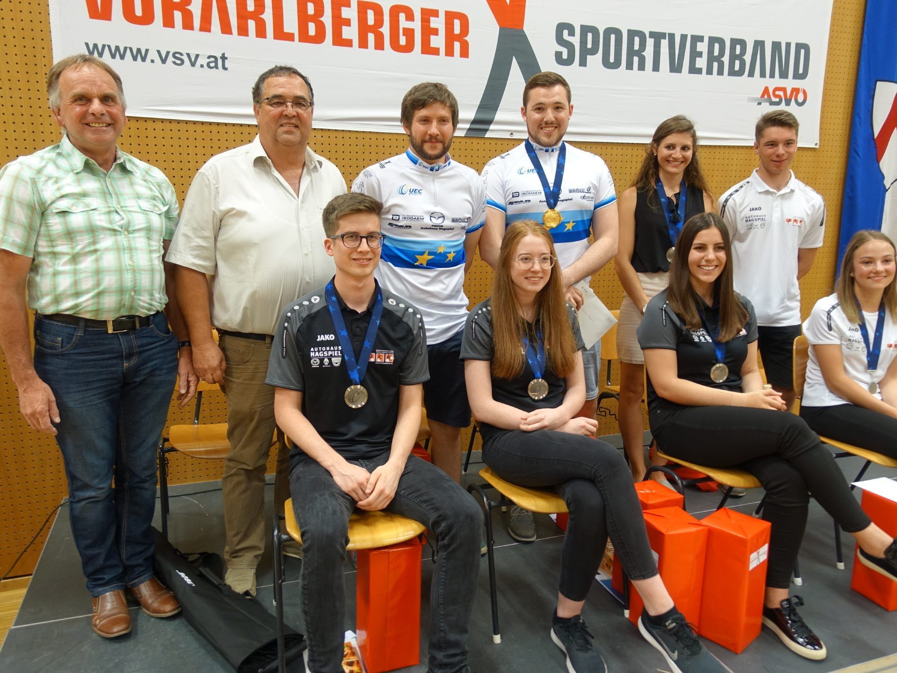 Für das Sportland Vorarlberg durfte Heimo Lubetz, Mitglied im Landessportbeirat, die Gratulation der Landesregierung und Ehrenpreise überbringen. Für die Sport-Dachverbände war Johannes Eberle vom ASVÖ Vorarlberg und Peter Steurer/ARBÖ und Rajko Schermer/ASKÖ unter den Gratulanten. Der Sportreferent der Gemeinde Höchst, Wilfried Meier drückte seine große Freude über die immer wieder so tollen Erfolge aus. Er erwähnte aber auch die großartigen Leistungen des Trainerteams und überbrachte den Sportlern zudem Geschenke. Aus Zwischenwasser ehrte Bürgermeister Kilian Tschabrun noch im Besonderen Patrick Schnetzer, er stammt aus Muntlix.