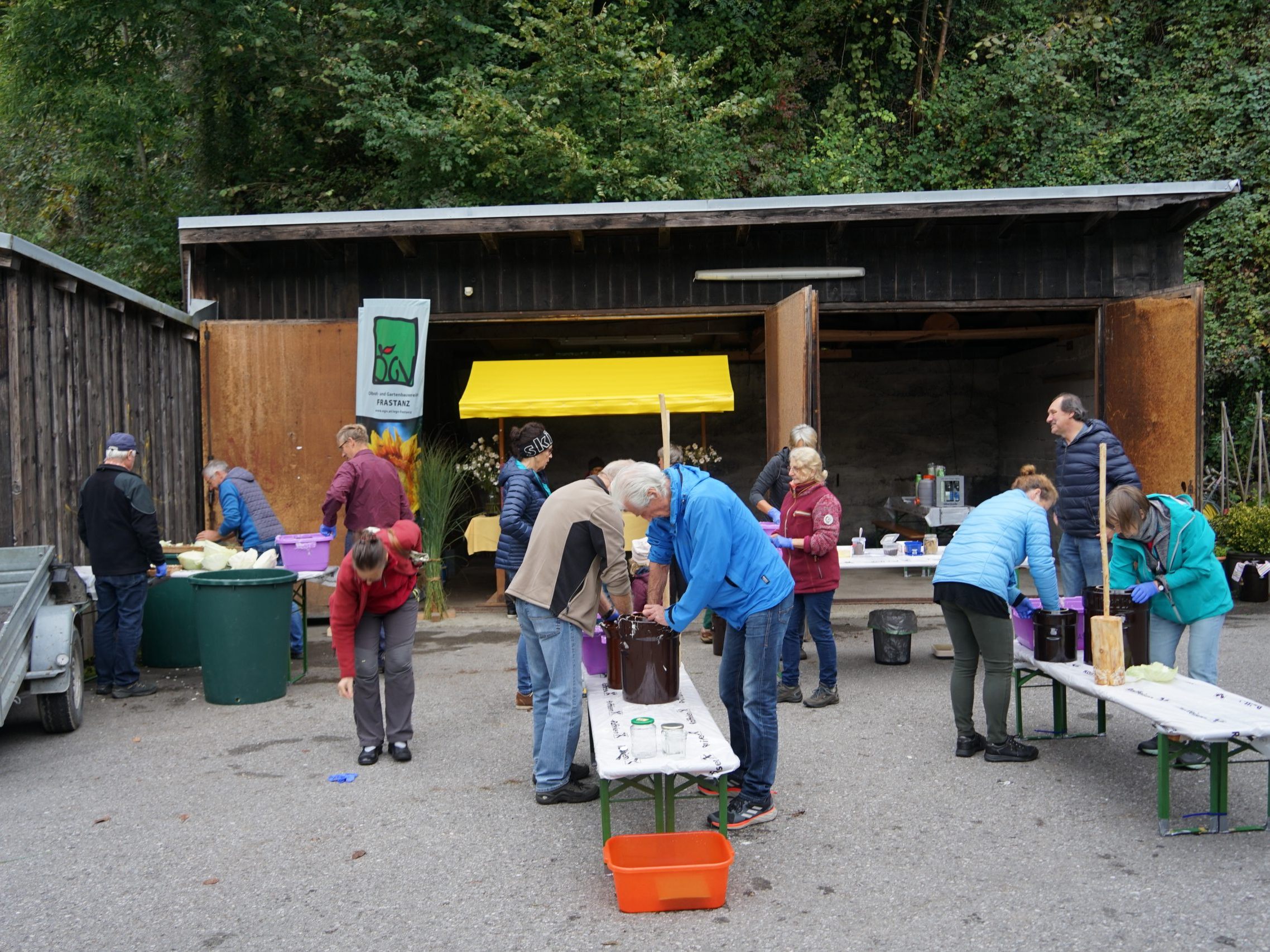 Durch die Milchsäurevergärung lassen sich die Vitamine des Sommers für den Winter haltbar machen. Das geschnittene Kohlgemüse wird klassisch in Gärtöpfe gefüllt oder kann portionsweise in mitgebrachte, saubere Einmachgläser gefüllt werden.