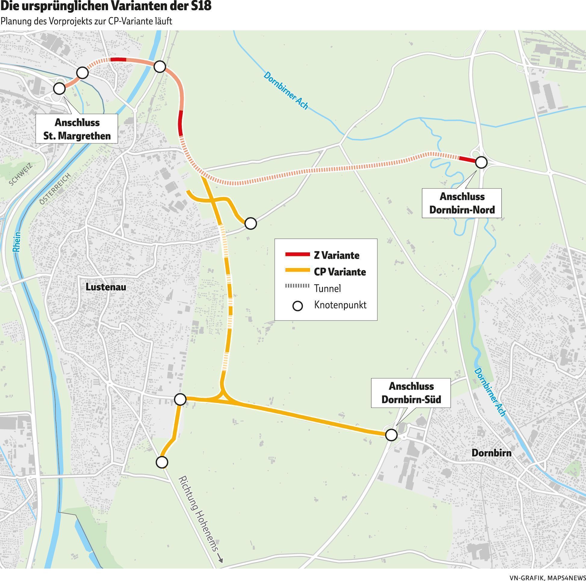 Bei der S18 handelt es sich um eine etwa 8,5 Kilometer lange Verbindungsstraße zwischen dem österreichischen und dem Schweizer Autobahnnetz. Sie soll im Wesentlichen am Ostrand von Lustenau verlaufen, ihr Bau ist mit rund 1,5 Milliarden Euro veranschlagt. Bis zu einer Inbetriebnahme der Schnellstraße könnten schätzungsweise 20 Jahre vergehen. Entlastet werden soll vor allem Lustenau, aber auch die Gemeinden entlang des Bodensees würden profitieren.