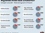 Bei den Schulformen sind die Sonderschulen der Spitzenreiter, mit einem Anteil an ausländischen Kindern und inländischen Kindern nichtdeutscher Muttersprache von 27,2 Prozent. Rund jeder fünfte Schüler kommt an den berufsbildenden mittleren Schulen (22,8 Prozent), den Volksschulen (22,4), den Polytechnischen Schulen (21,8) und den Hauptschulen (20,6) aus dem Ausland oder hat Deutsch nicht als Muttersprache. An AHS (14,1 Prozent) und berufsbildenden höheren Schulen (11,5) ist dagegen der Anteil solcher Schüler vergleichsweise niedrig, am allerniedrigsten ist er in Berufsschulen (10,8).
