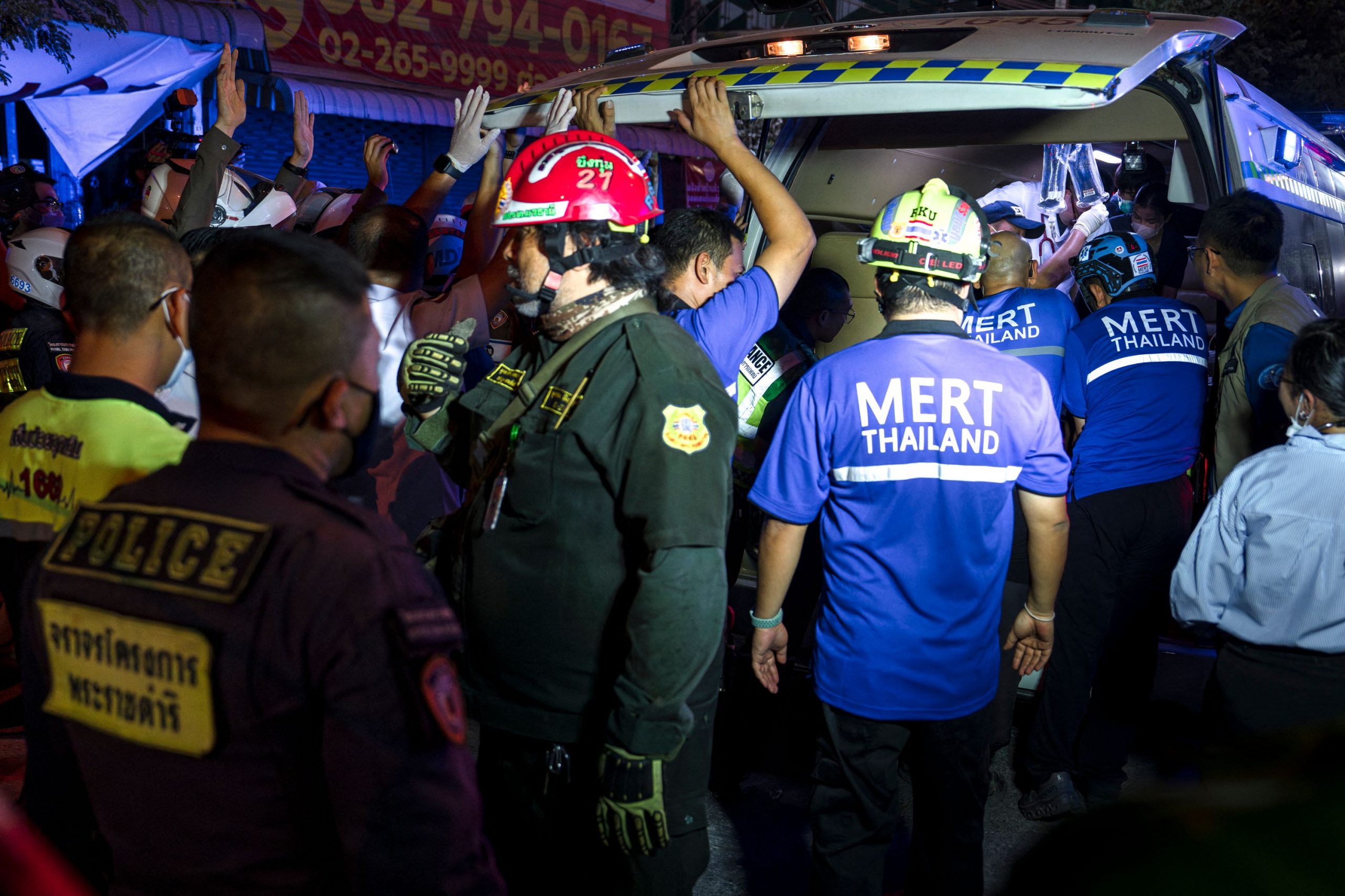 Auch im Nachbarland Thailand richtete das Beben schwere Schäden an. In der Hauptstadt Bangkok, rund tausend Kilometer vom Epizentrum des Bebens entfernt, stürzte in der Nähe des auch bei Touristen beliebten Chatuchak-Marktes ein 30-stöckiges, im Bau befindliches Hochhaus ein. Einsatzkräfte suchten unter Bergen aus Beton und Stahl nach den Verschütteten. Vize-Regierungschef Phumtham Wechayachai teilte mit, von den 81 unter den Gebäudetrümmern verschütteten Menschen seien mindestens drei tot.