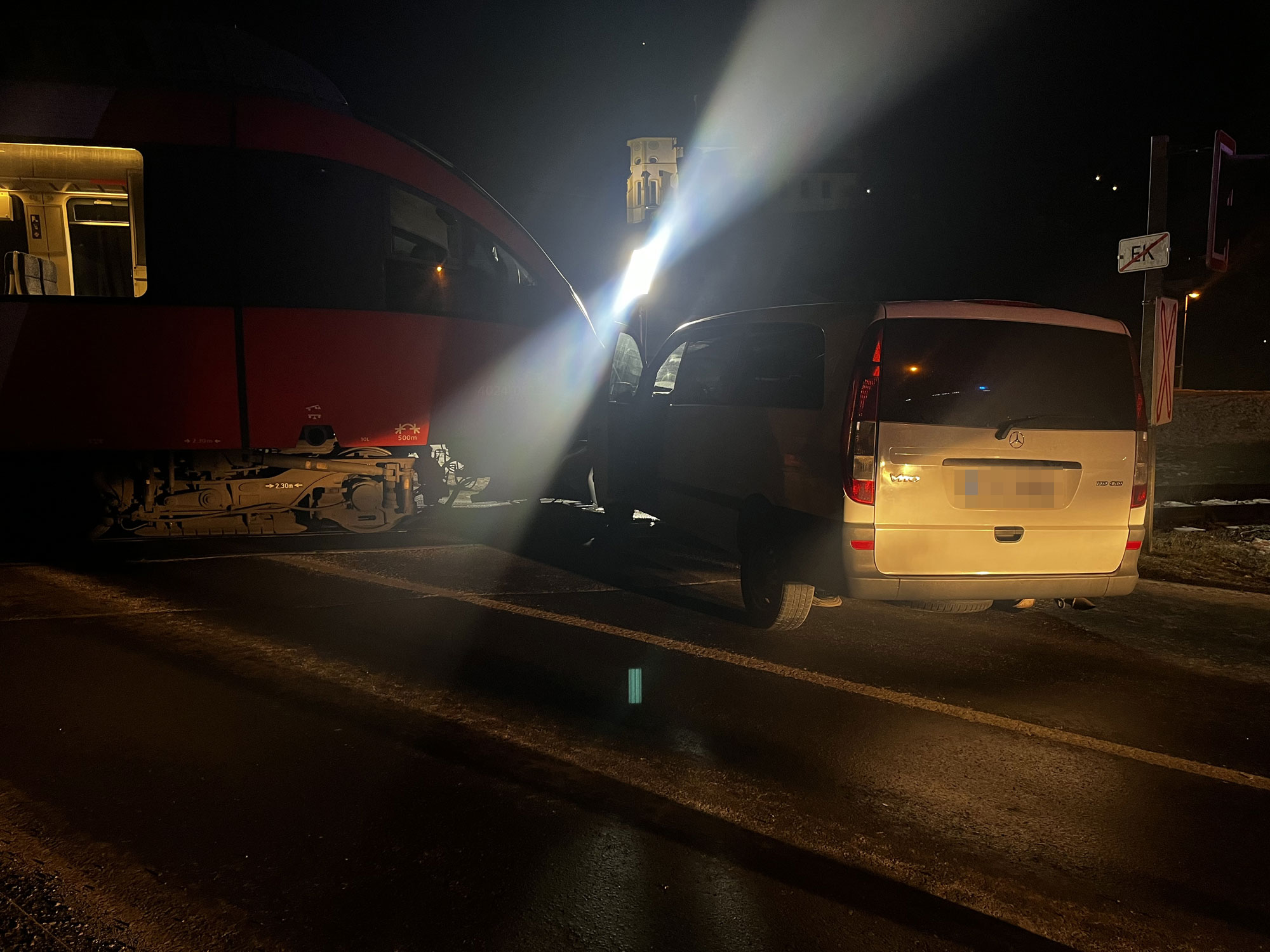 Am Montag gegen 05.40 Uhr morgens fuhr ein 49-jähriger Lokführer mit dem Zug von der Haltestelle Schruns-Tschagguns in Richtung Bludenz ab. Zur selben Zeit lenkte ein 28-jähriger Pkw-Lenker sein Fahrzeug von Bludenz kommend auf der L188 in Richtung St. Gallenkirch. Bei der dortigen Eisenbahnkreuzung kam es aus bislang unbekannter Ursache zum Zusammenstoß zwischen Regionalzug und Pkw. Der Bahnübergang ist ohne Schranke, aber mit einer Ampel geregelt.